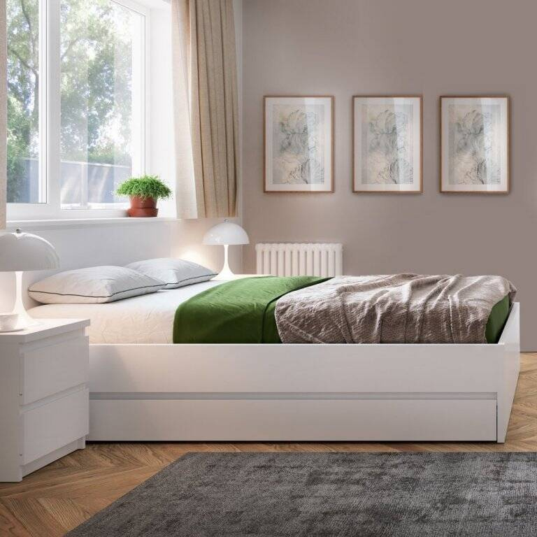 Įneškite į savo erdvę ramybę ir harmoniją su „Fribo FRIZ02“ – 120 cm balta lova, kuri yra modernaus dizaino ir funkcionalumo kvintesencija. Ieškote tobulos lovos paauglio kambariui ar vieno žmogaus miegamajam? Jūs atėjote į reikiamą vietą! „Fribo FRIZ02“ yra minimalistinio komforto sinonimas. Dėl matmenų, kurie papildo bet kurio kambario vizualinę erdvę, „FRIZ02“ lova suteikia daug erdvės patogiam nakties miegui. Jos 120 cm plotis siūlo tobulą erdvės ir komforto pusiausvyrą. Sukurta galvojant apie modernų interjerą, ji taip pat puikiai dera minimalistiniame ir prabangiame dizaine. Nesenstanti balta laminato plokštė yra lengvai valoma ir užtikrina, kad lova daugelį metų atrodys gražiai. Laminatas taip pat yra atsparus kasdieniam naudojimui, todėl jūsų lova daugelį metų išlaikys savo nepriekaištingą išvaizdą.