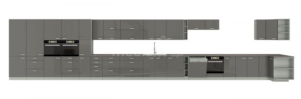Paprastos formos, lengvas dizainas ir blizgūs PVC fasadai – šio komplekto privalumai. Komplektas puikiai tinka bet kuriai moderniu stiliumi dekoruotai virtuvei.