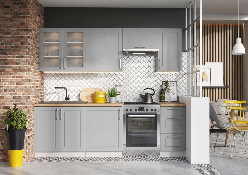 Dviejų spalvų „Natalia“ virtuvė – tai ergonomiškas komplektas, susidedantis iš kelių praktiškų spintelių ir apatinių spintelių be stalviršių, skirtas modernioms, stilingoms virtuvėms ir virtuvėlėms.