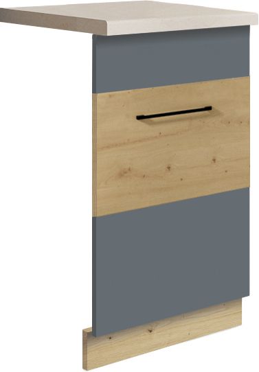 fasadai – blizgi balta + „Artisan“, blizgi latte + mediena, matinė pilka + „Artisan“ (viršutinės spintelės) (be įdėklų)