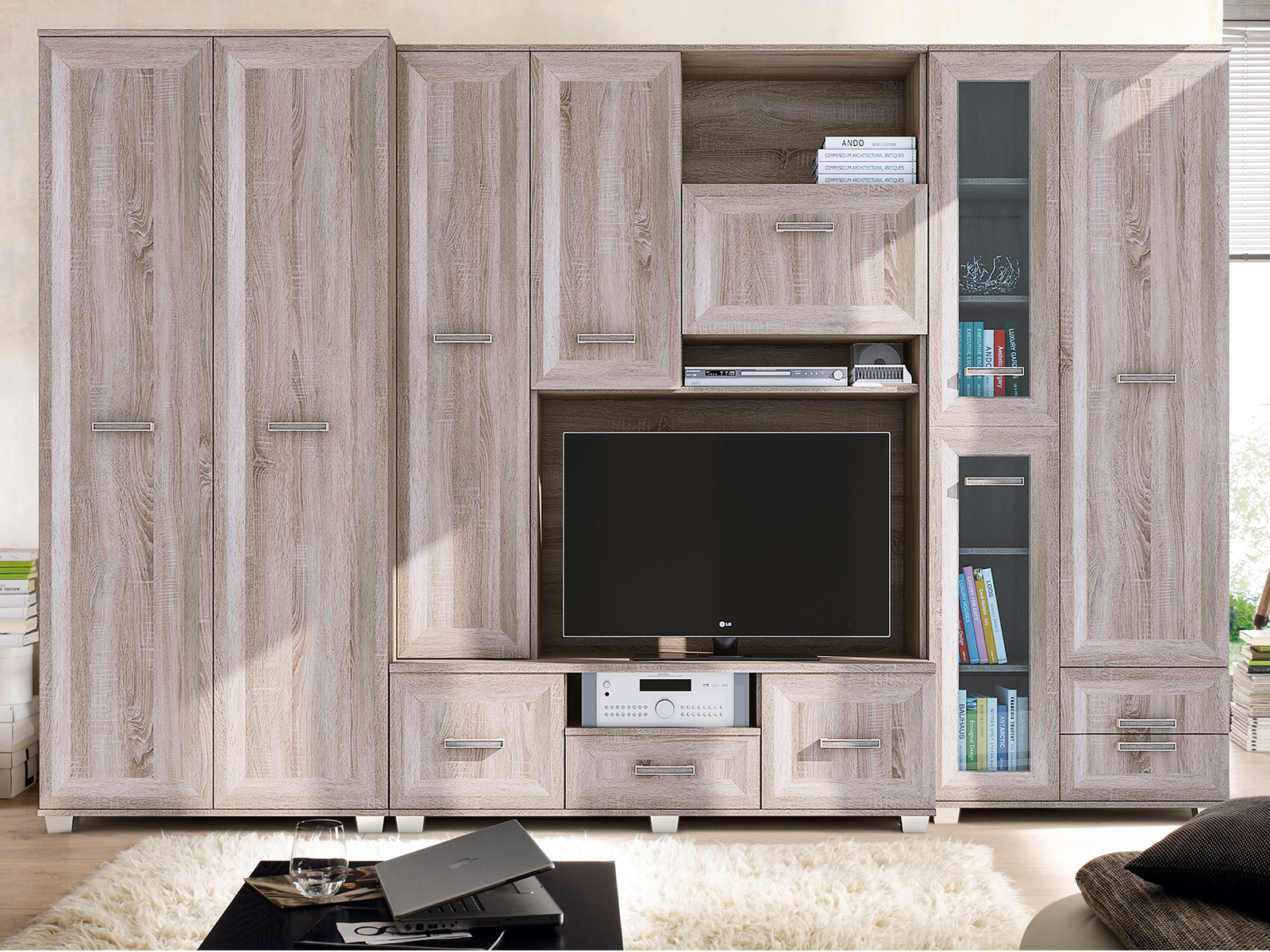 KORAL A rinkinys puikus pasirinkimas tiems, kurie visame kame ieško klasikinio stiliaus. Paprastas dizainas ir lengva priežiūra patiks gerbėjams. Sieninė spintelė turi daugybę praktiškų daiktadėžių, kurios padės jums išlikti organizuotiems, o atvirų, stiklinių lentynų dėka galite pabrėžti savo unikalų stilių stilingais aksesuarais. Baldai yra erdvūs ir siūlomi įvairių spalvų.