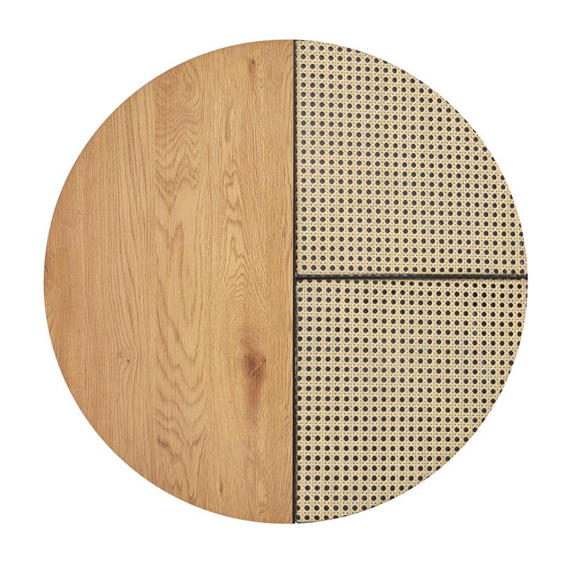 Matmenys: fi 70/36 arba fi 50/30 cm, dviejų kavos staliukų komplektas, medžiaga: laminuota MDF / milteliniu būdu dažytas plienas, spalva: auksinis ąžuolas / juoda