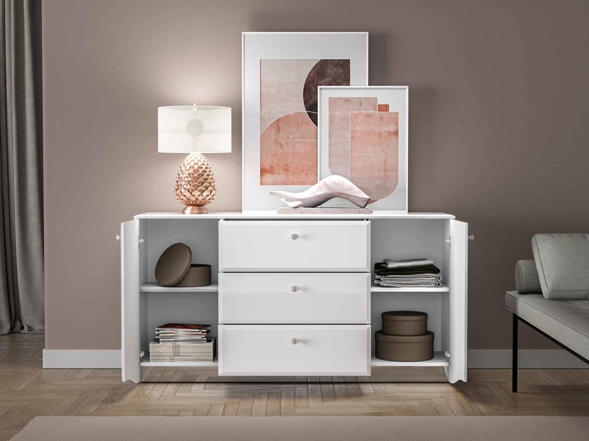Į krepšelį Palyginti Komodos ALAMEDA komoda su 3 stalčiais, 97 cm, blizgi balta/Vestminsterio ąžuolas 285.48€