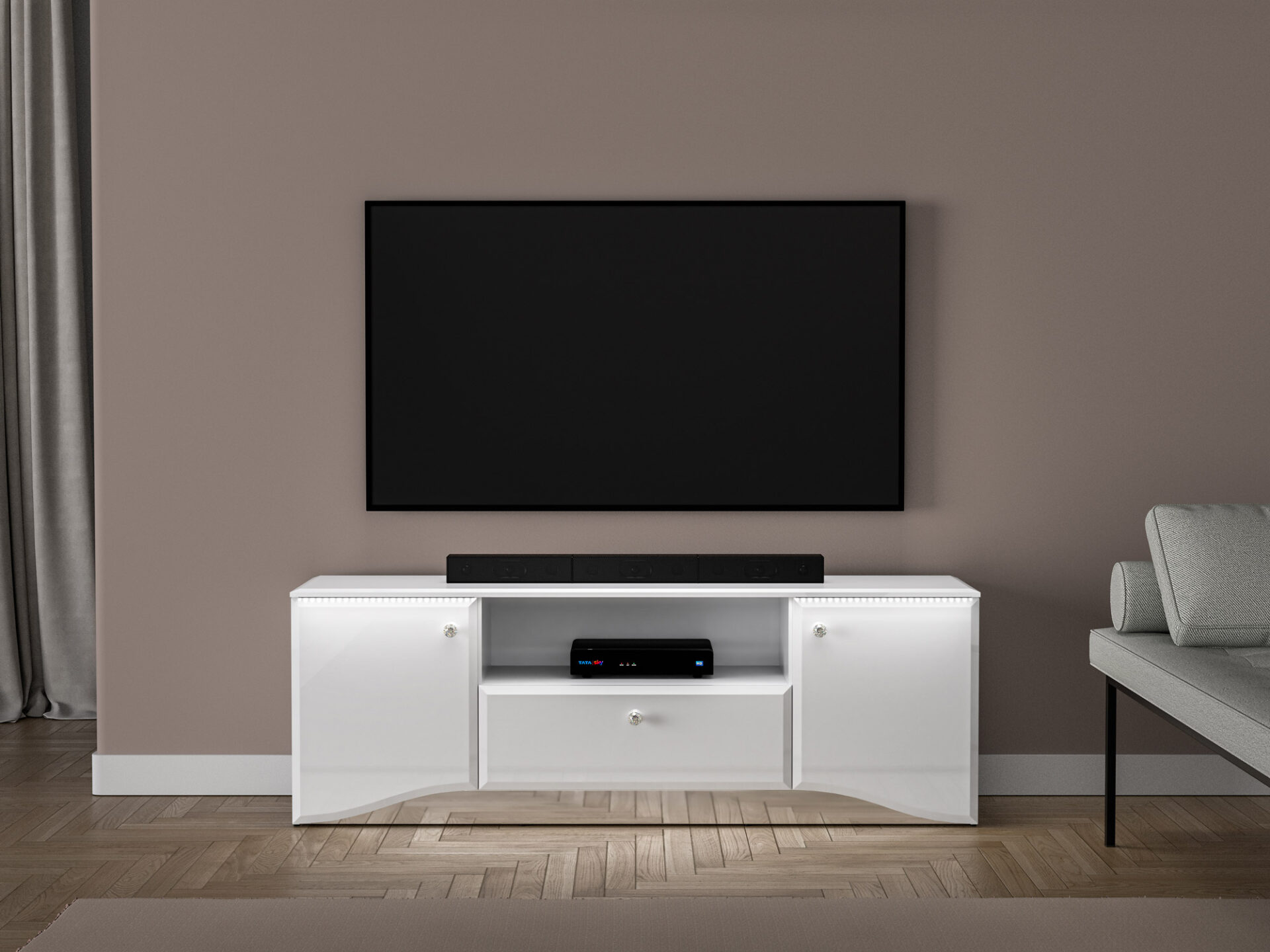 „GLAMOUR 03“ televizoriaus staliukas – puiki vieta jūsų televizoriui, kuris neabejotinai taps puikiu palydovu visai šeimai vakaro žiūrėjimo metu.