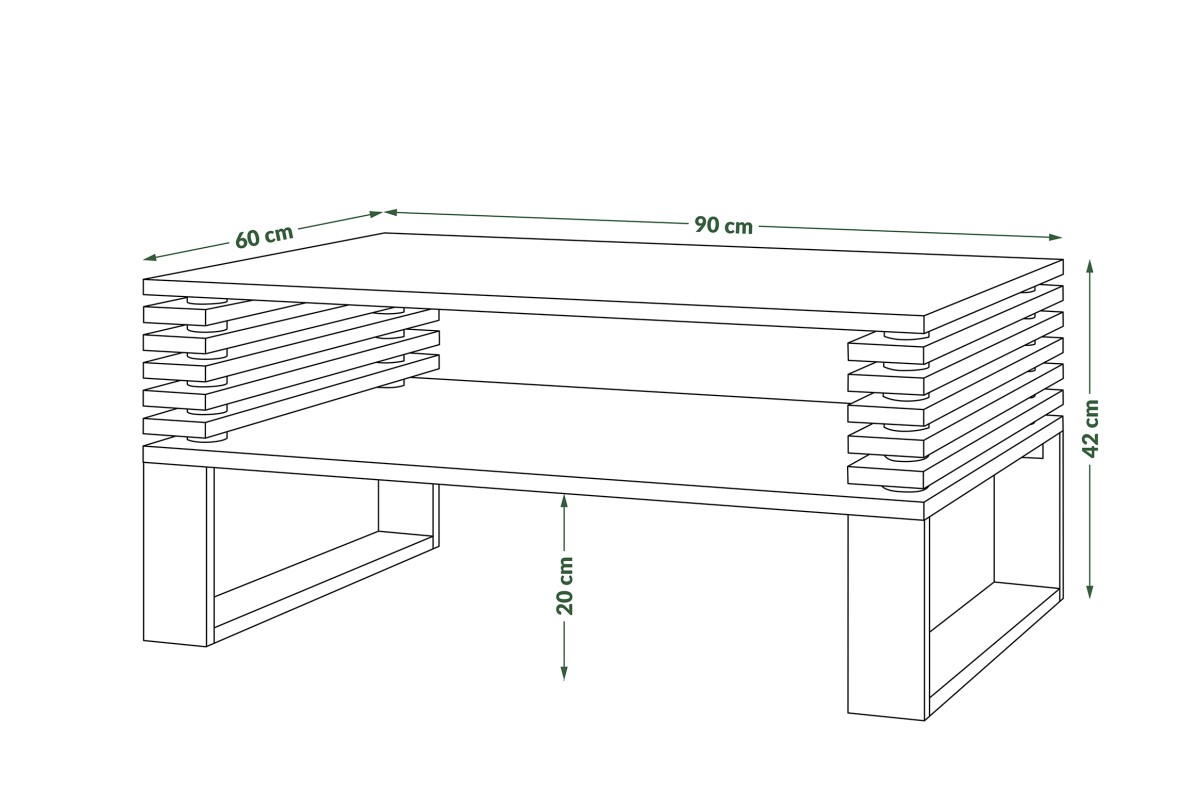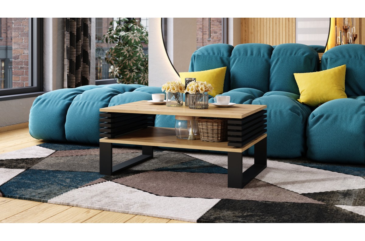 PLOTIS 90 cm, GYLIS 60 cm, AUKŠTIS 42 cm, MEDŽIAGOS: Medžio drožlių plokštė, PAVIRŠIUS: Matinis, STILIUS: Loft, SVORIS SU PAKUOTE 23 kg