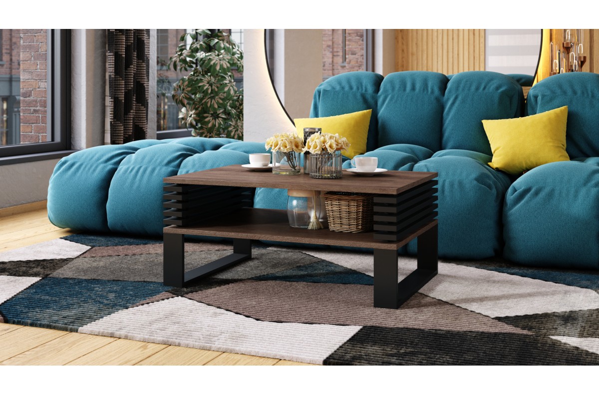 GOKEE S-90 Rudo ąžuolo/Matinės juodos spalvos – MODERNUS KAVOS STALIUKAS SU GROTELĖMIS