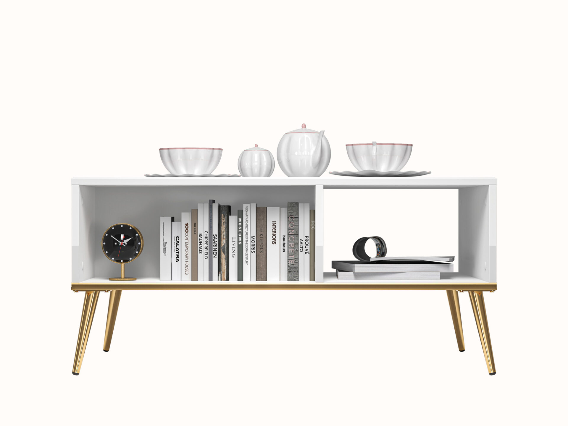 Stalas turi dvi atviras nišas, kuriose galite pasidėti tokius daiktus kaip laikraščiai ar knygos arba laikyti reikalingiausius daiktus.