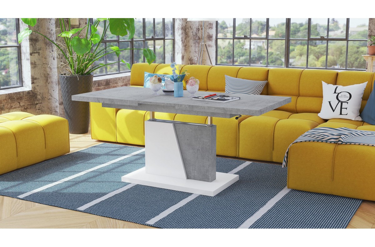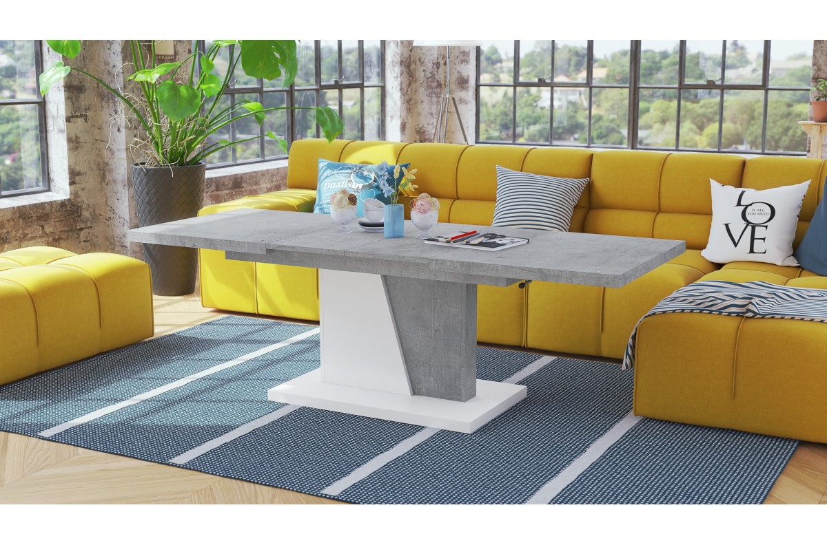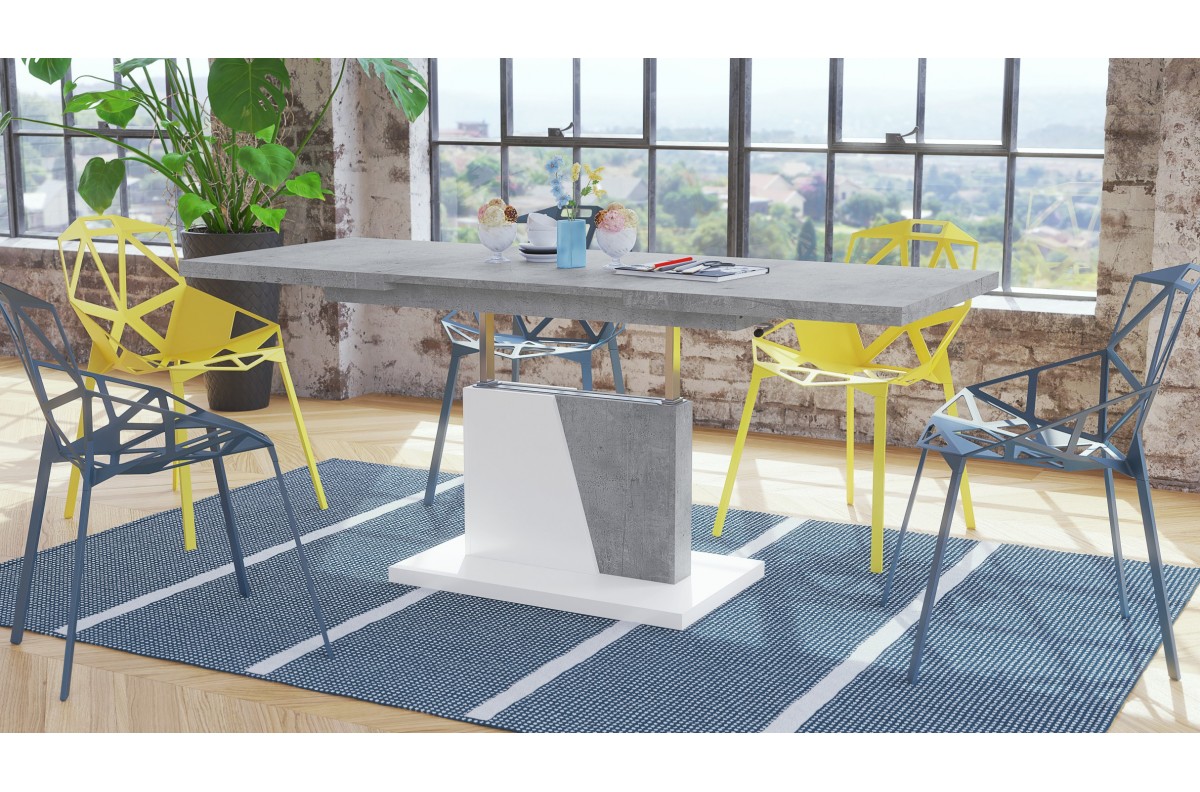 GRAND NOIR Millenium Concrete/White – MODERNUS IŠTRAUKIAMAS PAKELIAMAS STALAS