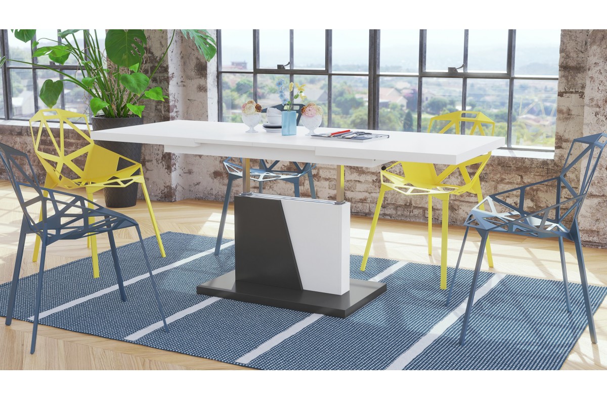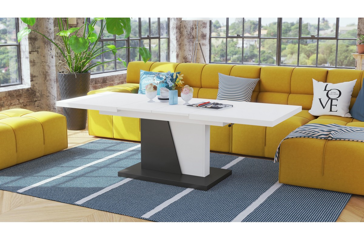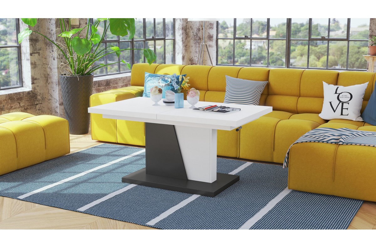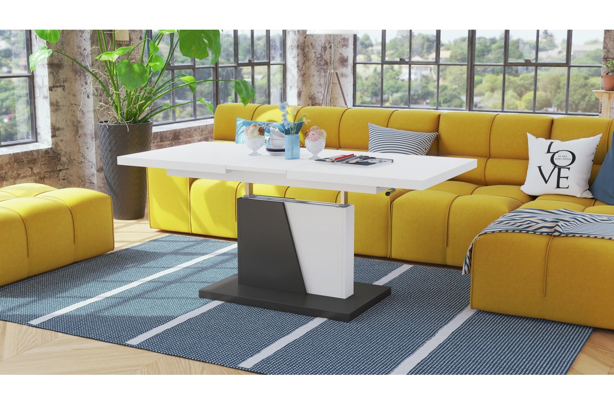 GRAND NOIR matinės baltos/antracito spalvos – MODERNUS IŠPLĖSTAMAS PAKELIAMAS STALIUKAS KAVOS STALIUKAS