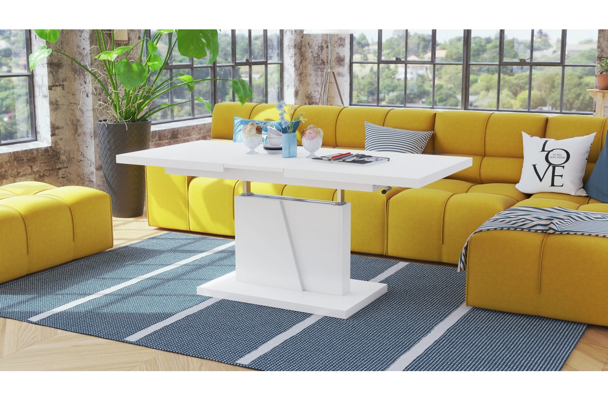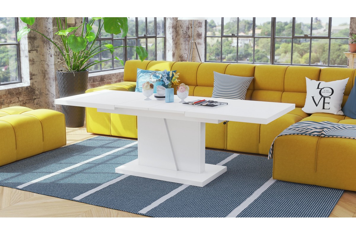 GRAND NOIR matinės baltos spalvos – MODERNUS IŠPLĖSTAMAS KĖLIMO STALAS