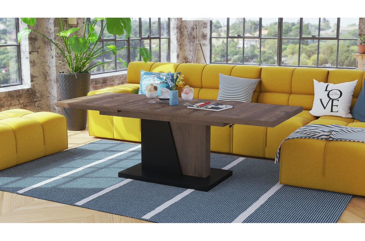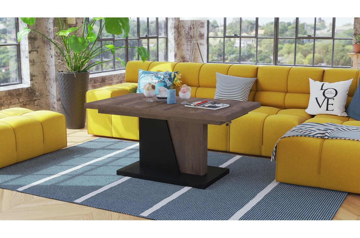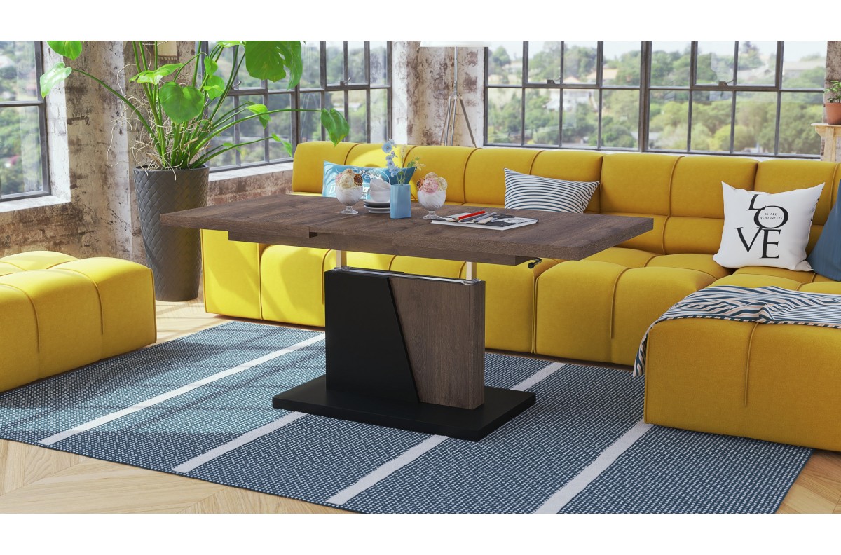 GRAND NOIR rudo ąžuolo / matinės juodos spalvos – MODERNUS IŠTRAUKIAMAS PAKELIAMAS KAVOS STALIUKAS