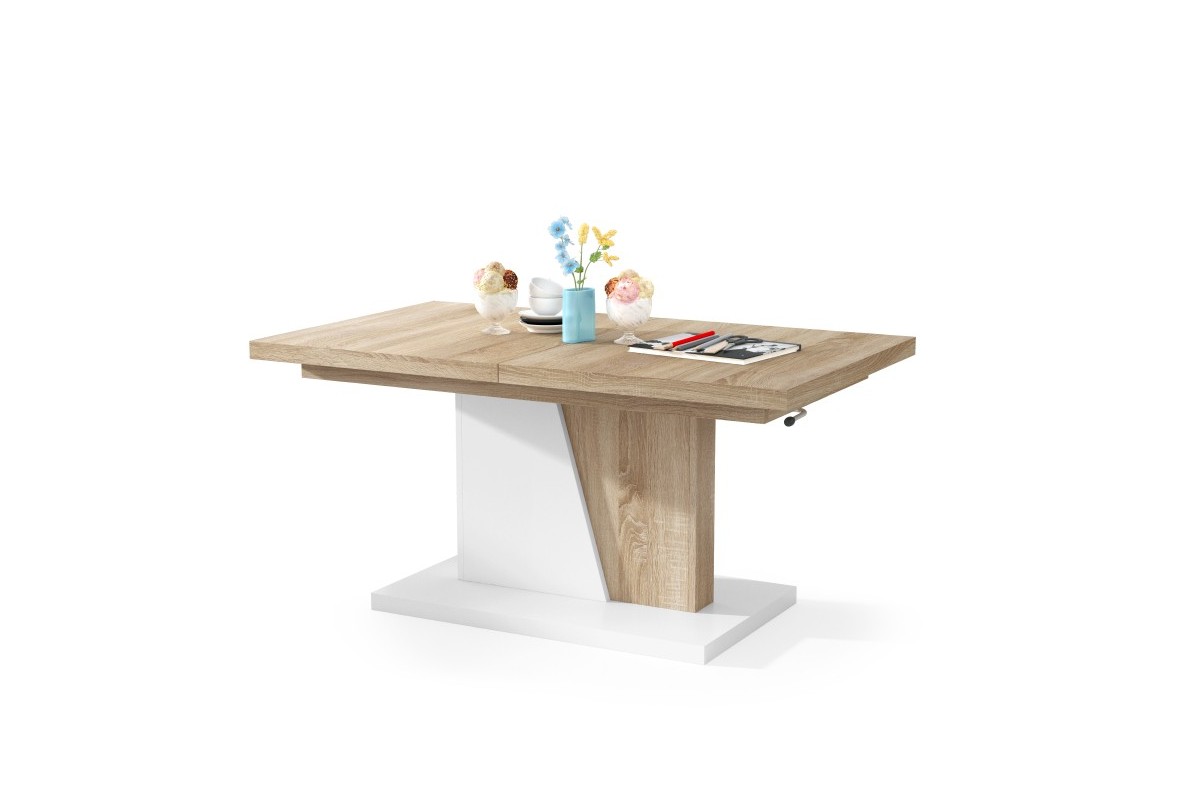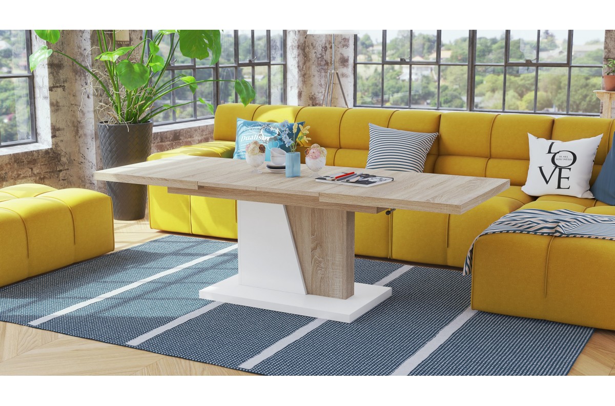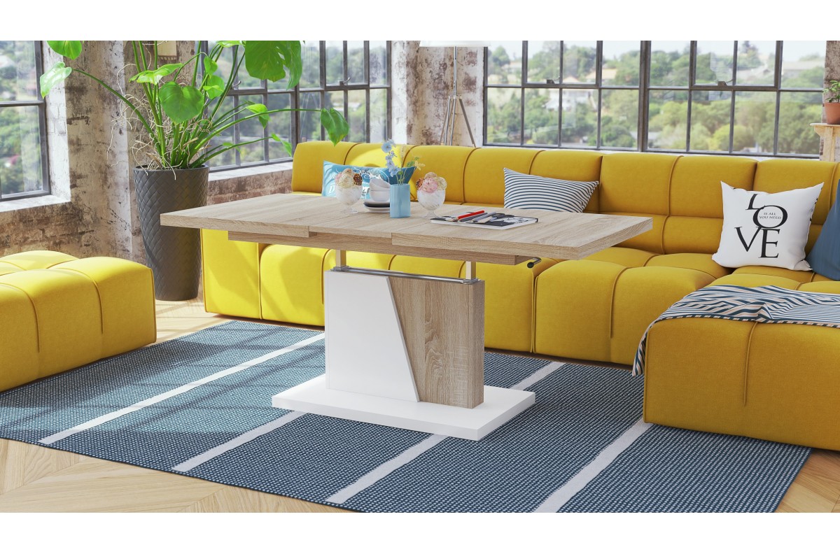 GRAND NOIR Sonoma ąžuolo/matinės baltos spalvos – MODERNUS IŠTRAUKIAMAS PAKELIAMAS KAVOS STALIUKAS