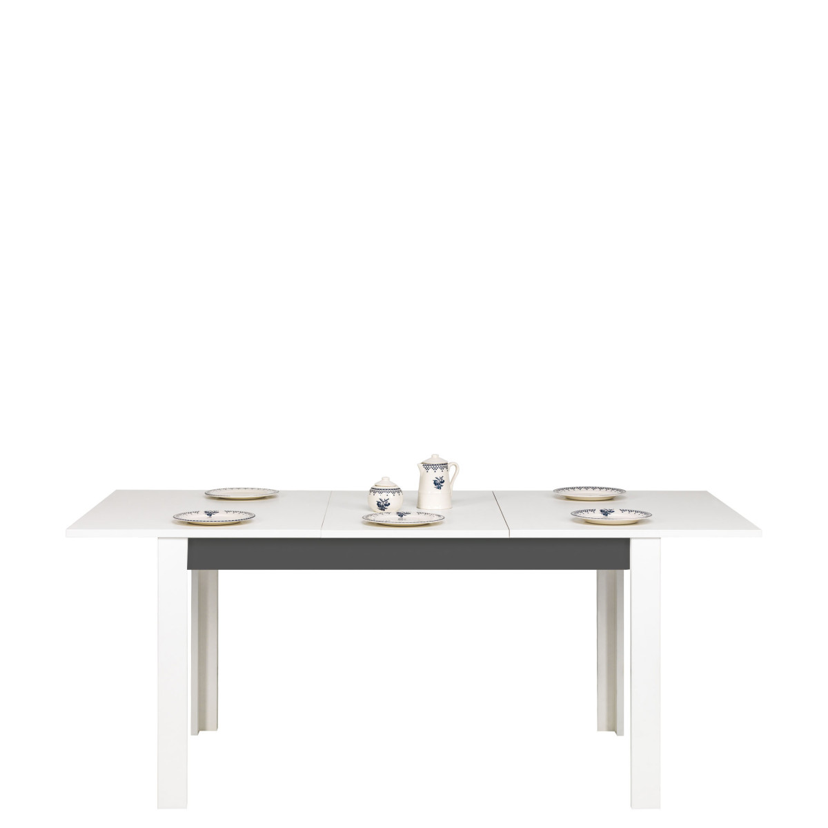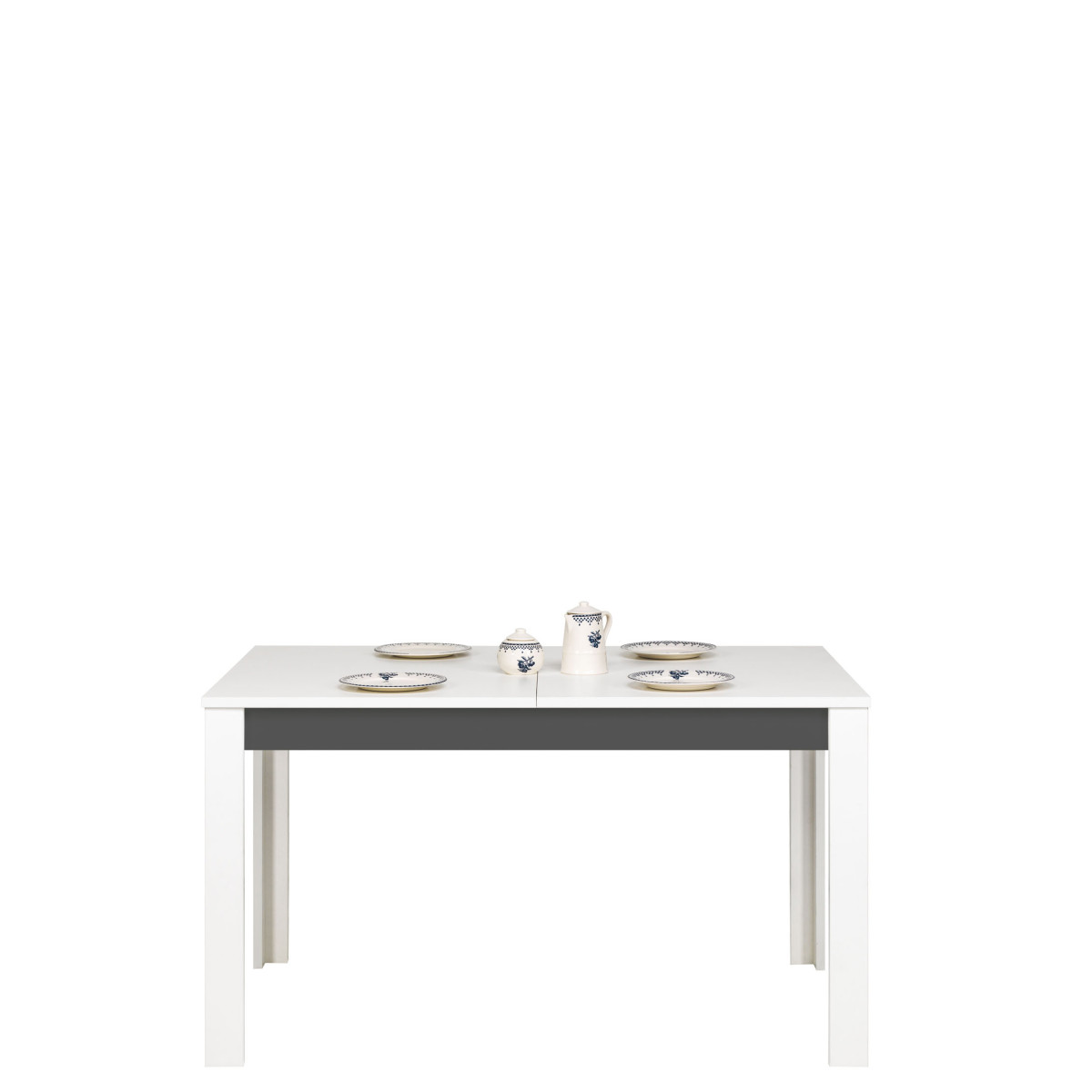 GRAY GR11 stalas puikiai tinka bet kuriai svetainei ar valgomajam. Funkcionalus ir praktiškas, jis puikiai tinka tiek kasdieniam naudojimui, tiek didesniems šeimos susibūrimams. Turėdamas 50 cm prailginimą, jį galima greitai ir lengvai prailginti iki 185 cm ilgio. Moderni spalvų gama, derinanti matinę baltą ir grafitą, leidžia sukurti tobulą interjerą, pritaikytą prie naudotojų skonio ir poreikių. Stalas idealiai tinka derinti su kitais GRAY serijos baldais arba kaip atskiras baldas, prisitaikantis prie jūsų interjero dizaino.