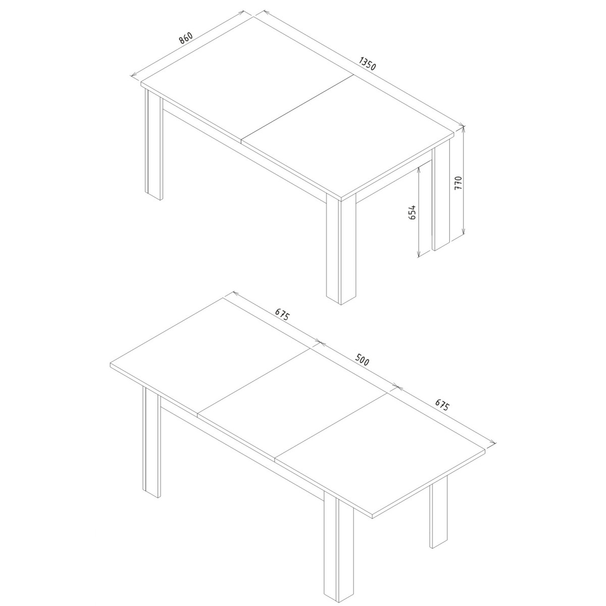 Ištraukiama TAIP Įdėklų skaičius 1 Plotis 86 cm Ilgis 135 cm Ilgis po išskleidimo 185 cm Aukštis 77 cm Produkto svoris su pakuote 38,90 kg Gamintojo kodas / simbolis GR11 Kolekcijos pavadinimas GRAY Pavadinimas b2b sistemoje GRAY GR-11 balta matinė grafito STALŲ komplektas Produkto pakuočių skaičius 3 Stilius UNIVERSAL Įranga Surinkimo instrukcijos / surinkimo priedai Surinkimas Savarankiškam surinkimui Spalva Balta / Grafitas Stalviršio medžiaga / tipas / storis 22 mm baldinė lenta Rėmo medžiaga / tipas / storis 16 mm baldinė lenta Kojelių medžiaga / tipas / storis 22 mm MDF baldinė lenta Kojelė / medžiaga / spalva Nereguliuojama / Baldų bėgeliai / plastikas / Juoda