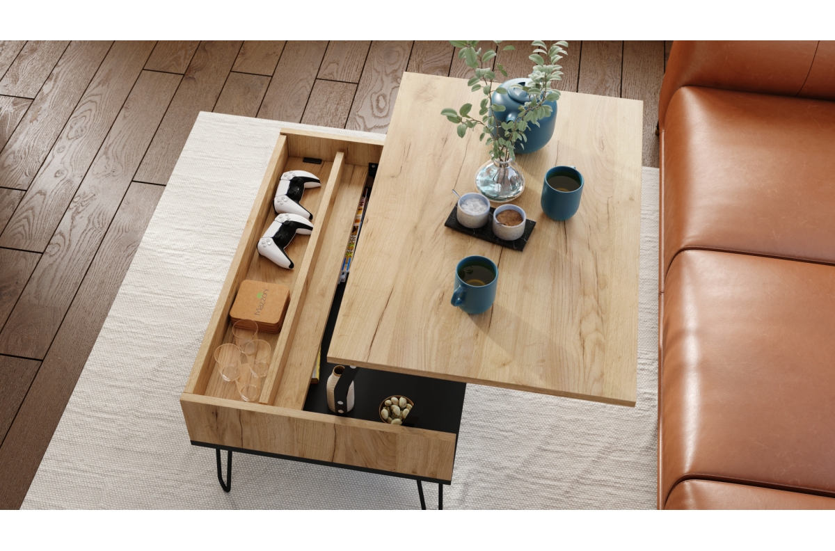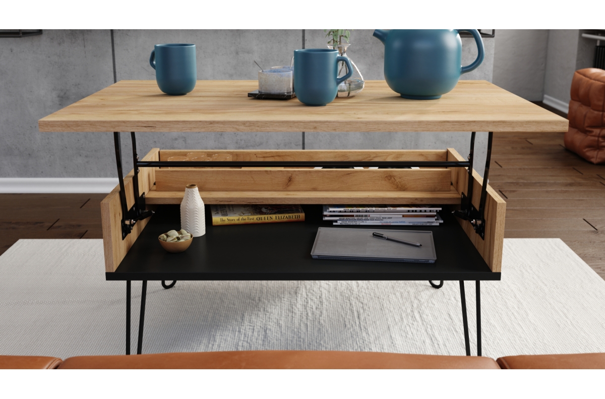 Būkite pirmas aprašęs “HAIRPIN S-90 Gold Craft Oak/Matt Black – MODERNUS KAVOS STALIUKAS SU PAKELIAMU STALVIRŠIU + SANDĖLIAVIMO KIEKIU + LENTYNA”