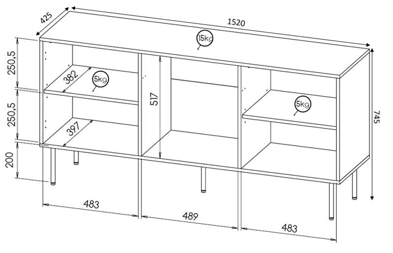 matmenys: aukštis/plotis/gylis 74,5 cm / 152 cm / 42,5 cm,