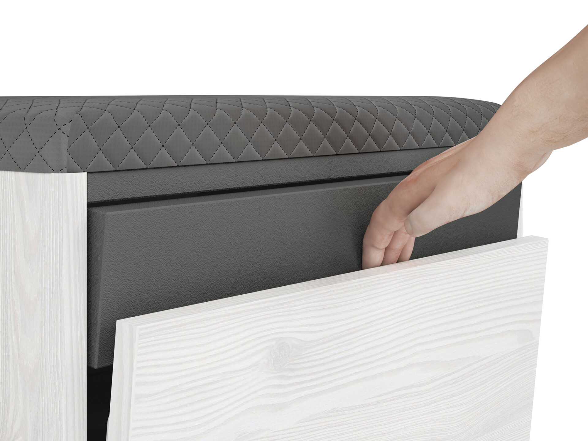 Spintelė turi patogią apmuštą sėdynę ir erdvią batų saugyklą.
