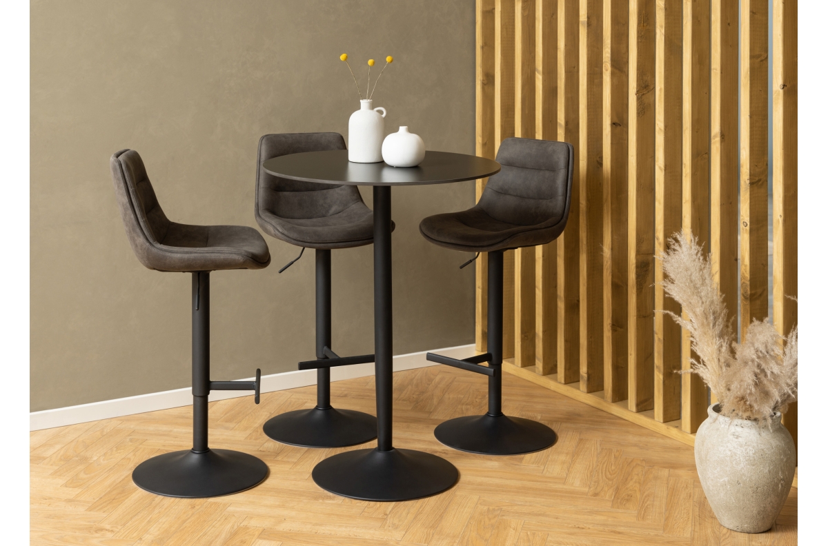 IDA Antracito ruda (Preston 96 audinys) / juoda koja – Apmuštas besisukantis baro krėslas virtuvei, svetainei, restoranui