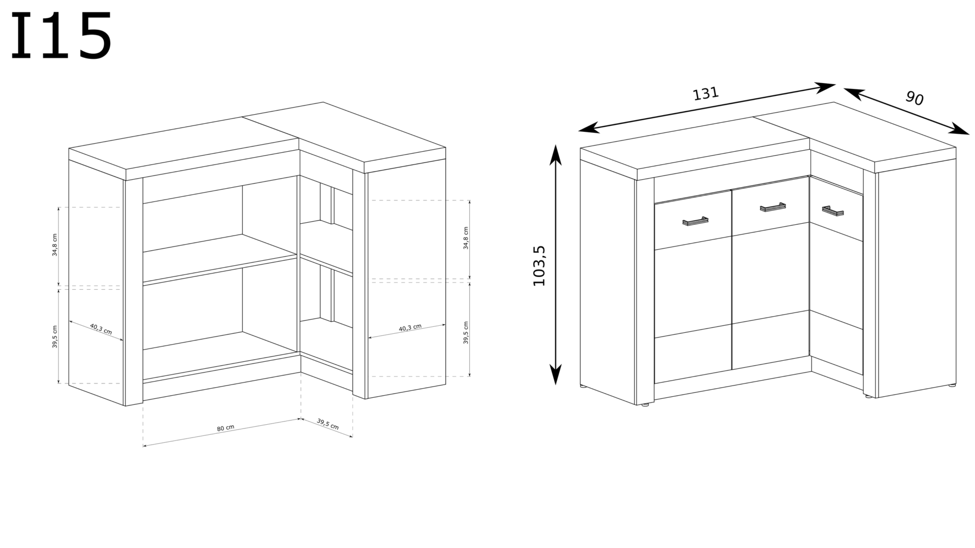 INDIANAPOLIS-15 – Kampinė komoda su 3 durimis, balta, kraft rašto