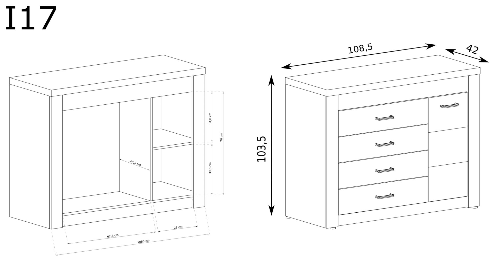INDIANAPOLIS-17 – Komoda 1D4S Kraft White