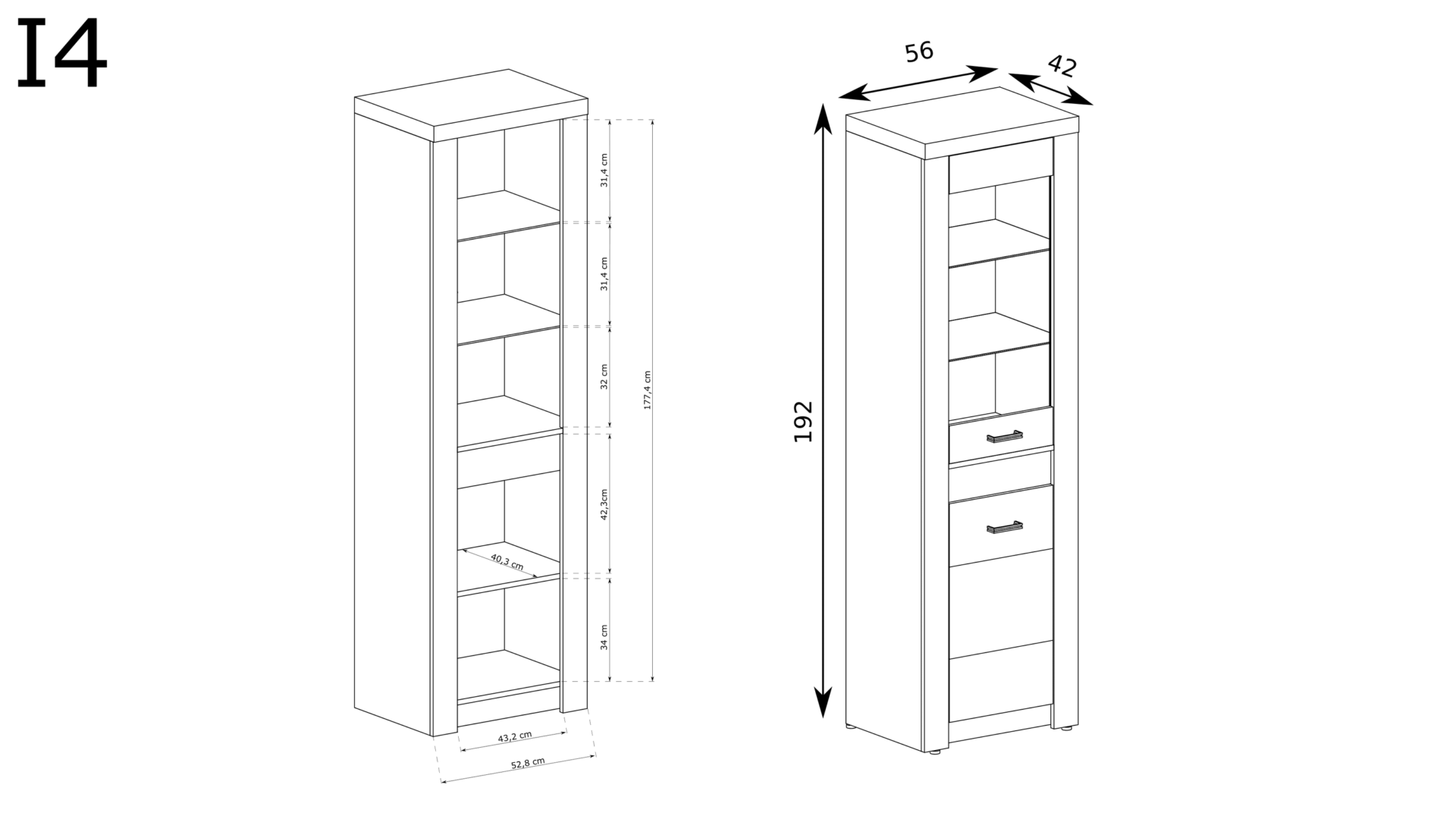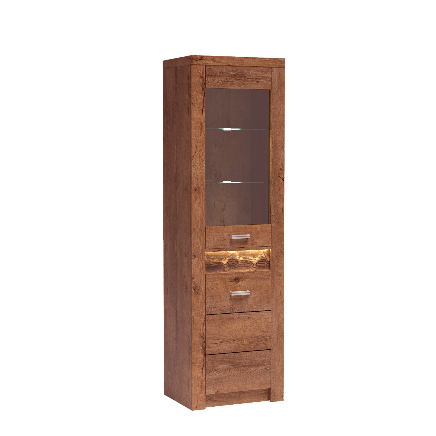 INDIANAPOLIS-4 vitrina iš uosio medienos suteiks jūsų kambariui modernumo, o subtilus grūdinto stiklo blizgesys – lengvumo. Aukštas spintelės siluetas, kurio plotis – 56 cm, aukštis – 192 cm, o gylis – 42 cm, todėl ji puikiai tinka tiek mažiems, tiek erdviems interjerams. INDIANAPOLIS-4 vitrinos funkcionalumas nusipelno ypatingo dėmesio. Dvi stiklinės lentynos leis jums meistriškai eksponuoti mėgstamus papuošalus, porcelianą ar suvenyrus, o apatinė spintelė su viena lentyna suteikia papildomos vietos drabužiams, aksesuarams ar dokumentams. Dėl kruopščiai apgalvoto dizaino šis baldas puikiai derina estetiką ir praktiškumą, todėl tai puikus sprendimas svetainei, miegamajam ar biurui. Šio baldo individualumą sustiprina galimybė rinktis stiklinę arba vientisą priekinę dalį, leidžiančią pritaikyti jį pagal savo pageidavimus ir interjero stilių. Be to, galimybė viršuje ir lentynose įrengti LED apšvietimą padidina estetinę vertę ir visą spintelę padaro dar patrauklesnę sutemus. Apšvietimas galimas kaip papildoma įranga, įsigyjamas atskirai. INDIANAPOLIS-4 vitrina yra ne tik funkcionali, bet ir tikra dekoratyvinė detalė jūsų namams.