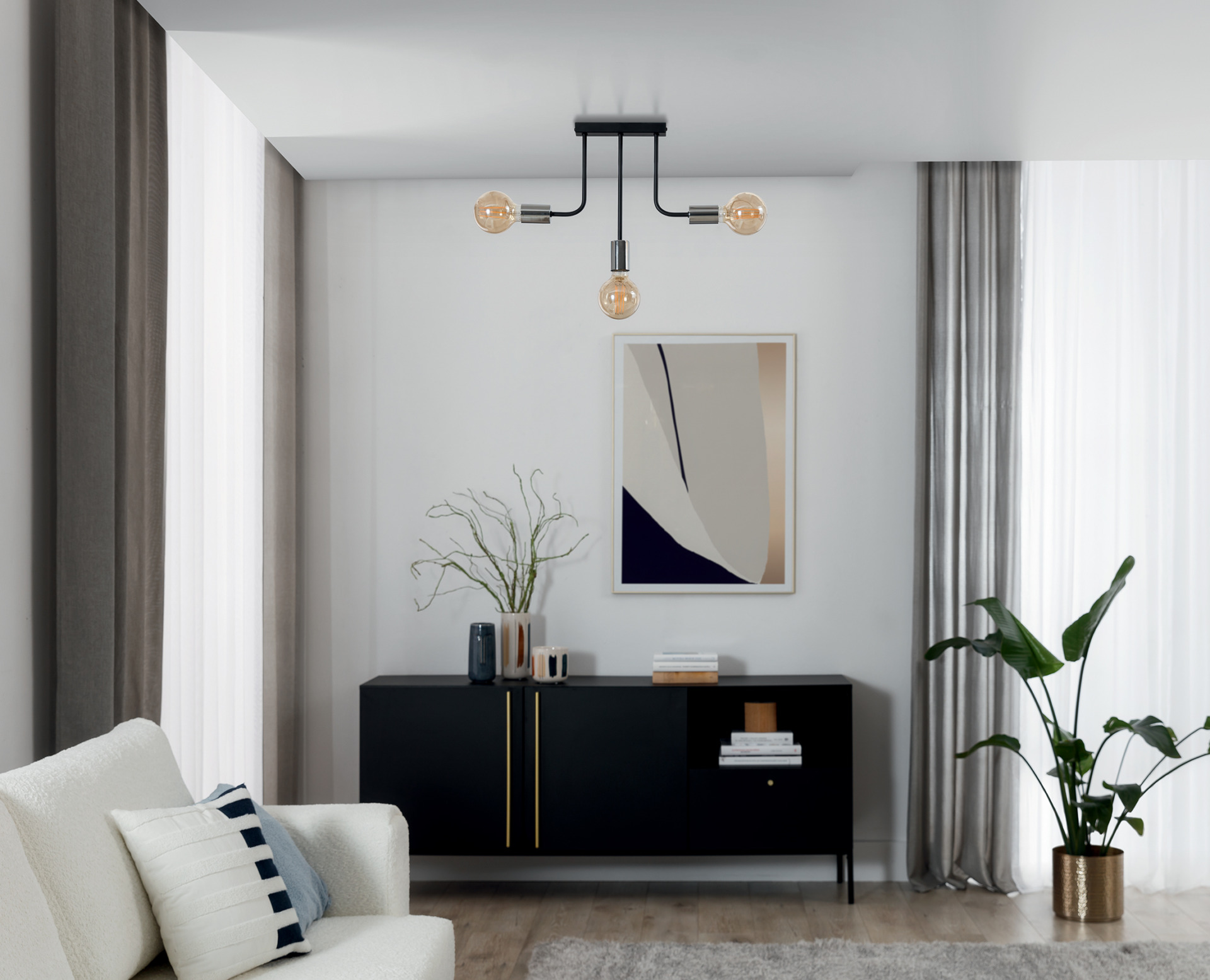 „Indigeo“ sietynas – tai unikalus šviestuvas, kuris puikiai įneša elegancijos ir modernumo į jūsų interjerą. Jo matmenys – 48 cm pločio, 42 cm ilgio ir 8 cm gylio, todėl jis puikiai tinka įvairioms erdvėms. Pagamintas iš patvaraus plieno, sietynas pasižymi tvirta konstrukcija, užtikrinančia ne tik estetiškai patrauklią išvaizdą, bet ir ilgaamžiškumą. Trys šviesos šaltiniai suteikia pakankamai šviesos, kad efektyviai apšviestų kambarį. Kiekviena iš trijų lempučių naudoja standartinį E27 sriegį, todėl ją lengva naudoti su įvairiomis lemputėmis. Maksimali leistina 15 W šviesos galia prisideda prie energiją taupančio apšvietimo, kartu užtikrinant komfortą ir jaukią atmosferą. Lempa atitinka IP20 apsaugos klasę, kuri garantuoja apsaugą nuo dulkių ir pirštų galiukų, tuo pačiu išlaikant laisvą oro ir šilumos srautą. Juoda „Indigeo“ sietyno spalva suteikia jam unikalų charakterį, papildantį tiek modernų, tiek klasikinį interjerą. Minimalistinis dizainas paverčia jį puikia dekoracija ir šviesos šaltiniu, kuris patraukia dėmesį ir dar labiau pagerina kambario dizainą.