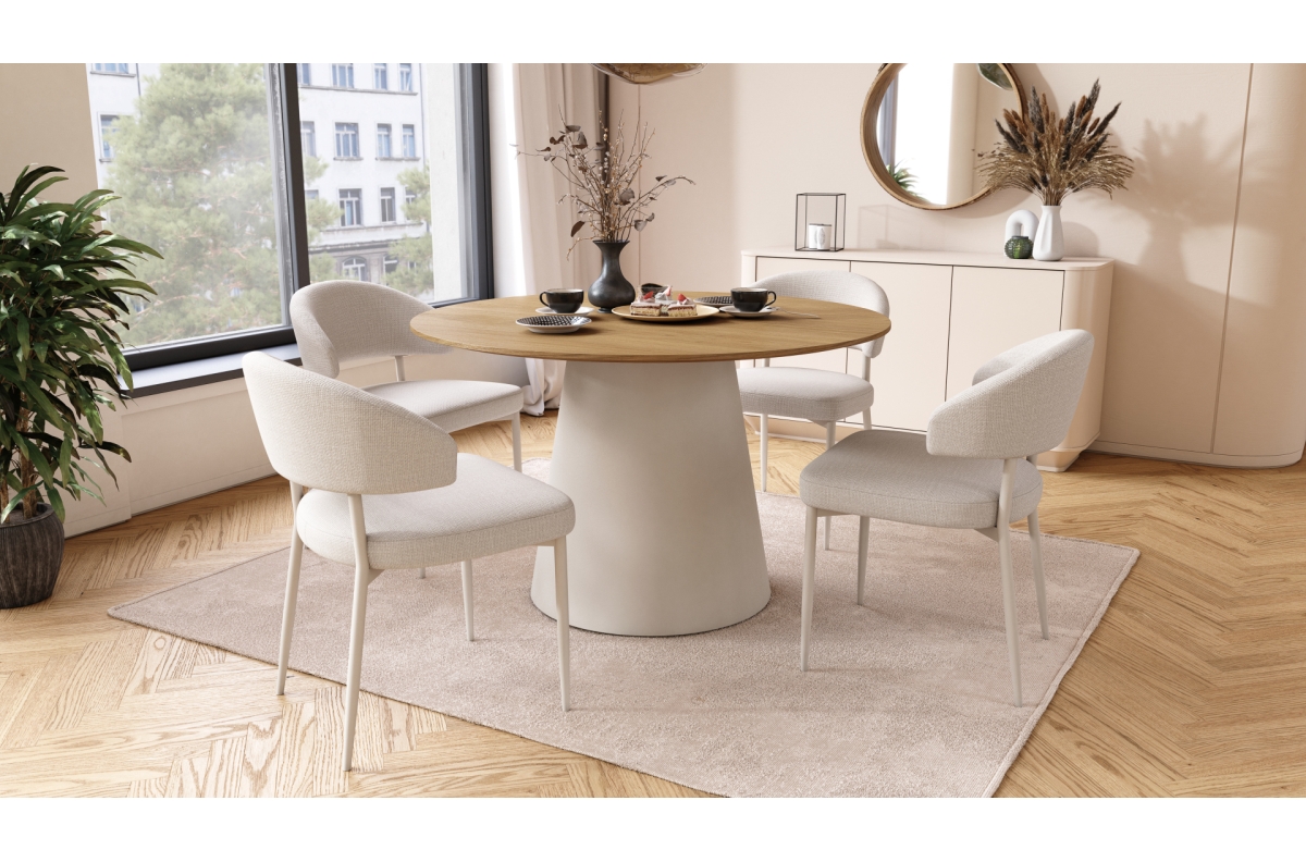 IRIS Beige (Basel 24 audinys) / pilkai smėlio spalvos rėmas (kašmyras) – MODERNUS BOHO STILIUS APMUŠTAS SVETAINĖS / VALGOMOJO KĖDĖ