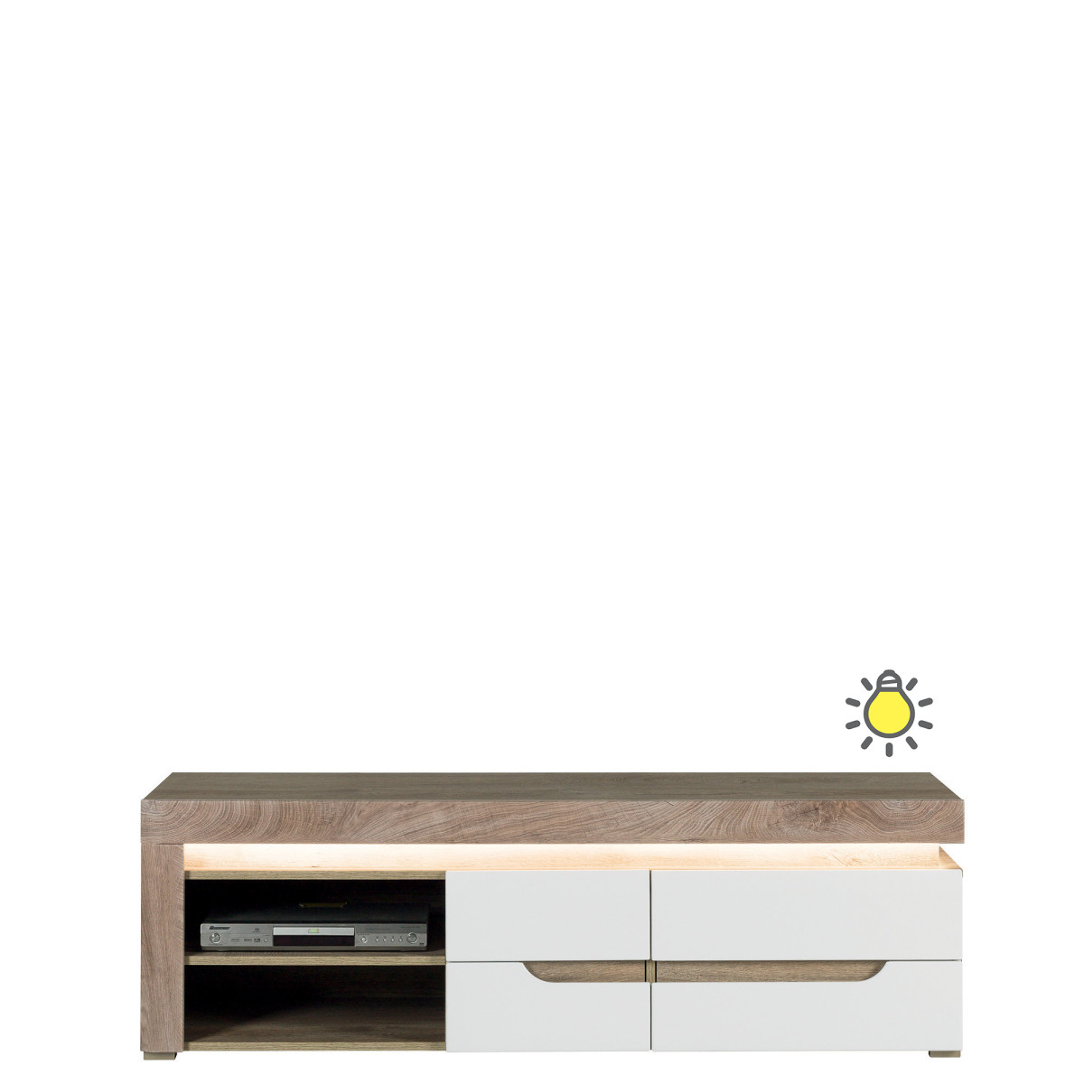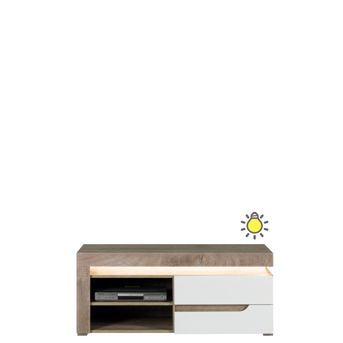 IRMA IM03 indauja – elegantiškas ir žavus dizaino elementas, puikiai tinkantis svetainėms, valgomiesiems ir koridoriams. Ją sudaro dviejų durų spintelė ir stalčius. Viduje, už dešinės ir kairės durelių, yra lentynos dokumentams ar kasdieniams daiktams laikyti. Spintelė turi švelnaus uždarymo sistemą ir energiją taupantį šaltai baltą LED apšvietimą viršutinėje panelėje. Ryškūs frezuoti fasadai, kurie pakeičia tradicines rankenas, pabrėžia bendrą indauja stilių. Klasikinis matinės ir blizgios baltos spalvos derinys puikiai atitinka dabartines tendencijas, suteikdamas indaujai neįtikėtino žavesio ir gaivumo, o atspindinti šviesa suteikia interjerui šaunios elegancijos. Galima rinktis iš dviejų standartinių apdailos spalvų – baltos ir „Maggia Oak“. Indauja idealiai tinka derinti su kitais IRMA serijos baldais arba naudoti kaip atskirą baldą, leidžiantį jums pritaikyti savo kambario dizainą.