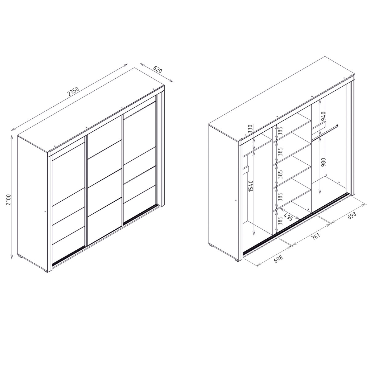Plotis 235 cm Gylis 62 cm Aukštis 210 cm Produkto svoris su pakuote 197,05 kg Gamintojo kodas / simbolis IM15 Kolekcijos pavadinimas IRMA Pavadinimas b2b sistemoje IRMA IM-15 balta/balta blizgi STUMDOMA SPINTELĖ komplektas Produktų pakuočių skaičius 6 Stilius Modernus Įranga Surinkimo instrukcijos / surinkimo priedai Surinkimui Savarankiškam surinkimui Korpuso spalva Balta Korpuso apdailos medžiaga / tipas / storis 16 mm baldinė plokštė / Juostelė 18 mm MDF baldinė plokštė Viršutinio korpuso apdaila / medžiaga / tipas / storis 16 mm baldinė plokštė Apatinio korpuso apdaila / medžiaga / tipas / storis 16 mm baldinė plokštė Lentynos spalva Balta Lentynos apdailos medžiaga / tipas / storis 16 mm baldinė plokštė Lentynų kiekis 4 Karūninės lentynos kiekis 1 Galinės sienelės apdailos medžiaga / tipas / storis 2,5 mm HDF baldinė plokštė Matoma galinės sienelės dalis Balta Priekinė spalva Blizgi balta Priekinės apdailos medžiaga / tipas / storis 18 mm MDF baldinė plokštė Priekinė dalis su veidrodžiu TAIP Priekinė dalis su veidrodžiu kiekis 1 Priekinis vyris Stumdomų durų sistema Priekinė rankena / apdaila / spalva Aliuminio profilis / Sidabrinė Išorinis apšvietimas Standartinis Išorinio apšvietimo šviesos spalva Šaltai balta Išorinis apšvietimas Energijos vartojimo efektyvumo klasė A++ Kojelė / apdaila / spalva Reguliuojama / plastikinė / nikelinė Papildoma kojelė / apdaila / spalva Reguliuojama vidurinė dalis / plastikinė / nikelinė Durelių skaičius 3 Uždarų nišų skaičius 8 Korpuso įranga Standartinė: 3 pakabos strypai
