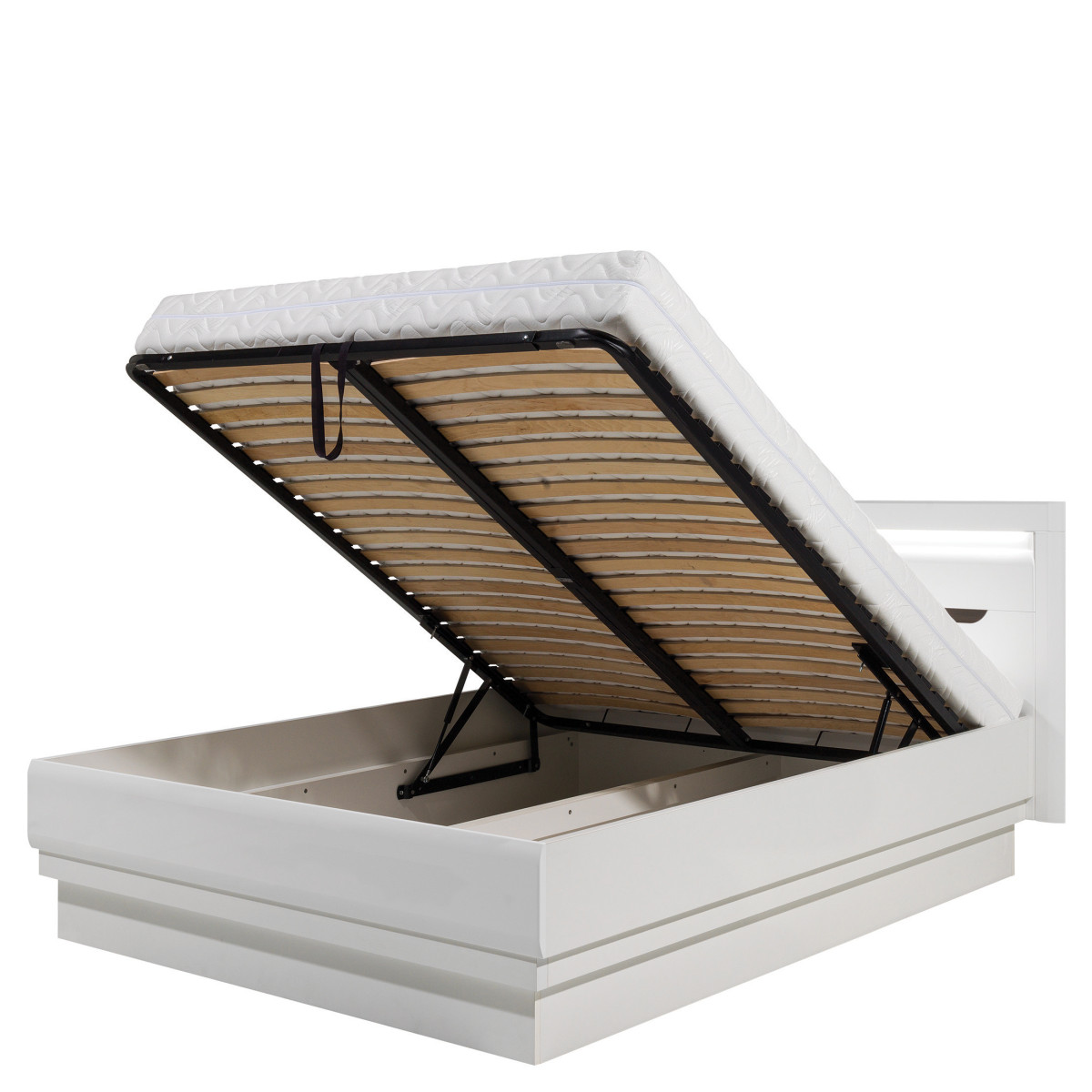 IRMA IM16 lova su daiktadėže – puikus pasirinkimas jūsų miegamajam, puikiai tinkantis klasikinio ir jaukaus išdėstymo mėgėjams. Tvirta lovos konstrukcija užtikrina patogią miegojimo erdvę, o pats galvūgalis tarnauja kaip dekoratyvinis elementas, pabrėžiantis baldo formą. Lova turi padalintą daiktadėžę ir metalinį rėmą su medinėmis lentjuostėmis. Čiužinys į komplektą neįeina; jį galima įsigyti atskirai. Galite ją aprūpinti papildomu LED apšvietimu (už papildomą mokestį), kuris pabrėš modernų baldo charakterį, o išsklaidyta šviesa sukurs malonią atmosferą miegamajame. Klasikinis matinės ir blizgios baltos spalvų derinys puikiai atitinka dabartines tendencijas, suteikdamas lovai neįtikėtino žavesio ir gaivumo. Standartinė apdaila yra dviejų spalvų – baltos ir Maggia ąžuolo. Lova yra trijų dydžių: 140 cm, 160 cm ir 180 cm. Ji puikiai derės su kitais IRMA serijos baldais arba kaip atskiras baldas, kurį galima pritaikyti prie jūsų kambario išdėstymo.