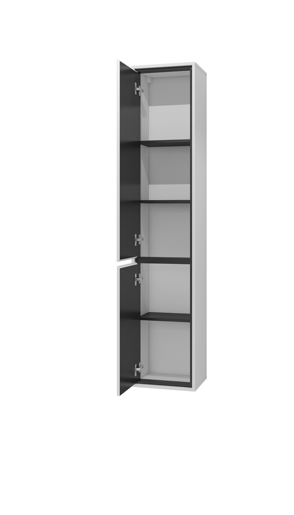 Suteikite savo interjerui modernumo su „Irvine 2D“ aukšta pakabinama kolona. Ši elegantiška kolekcija pasižymi tobulu blizgios baltos spalvos ir juodo onikso akcento deriniu, todėl tai puikus sprendimas tiems, kurie vertina funkcionalumą ir stilių. Šis unikalus baldas ne tik papuoš jūsų erdvę, bet ir suteiks joje harmonijos bei tvarkos. 35 cm pločio, 172 cm aukščio ir 30 cm gylio aukšta kolona lengvai dera prie įvairių interjero dizainų. Dėl savo plonos formos ji idealiai tinka mažesnėms patalpoms, kur svarbus kiekvienas erdvės centimetras. Šios spintelės, sukurtos atsižvelgiant į modernų gyvenimo būdą, siūlo daug vietos daiktams susidėti, todėl yra praktiškos kasdieniam naudojimui. Šis baldas pagamintas iš aukštos kokybės MDF plokštės fasadams ir laminuotos plokštės korpusui, užtikrinančio patvarumą ir tvirtumą ilgus metus. Subtilus balto fasado blizgesys kartu su matiniu korpusu traukia akį ir suteikia bet kokiai erdvei stiliaus. Papildomas privalumas – tylūs dvigubi vyriai, kurie padidina naudojimo komfortą ir pagerina durų atidarymo estetiką.
