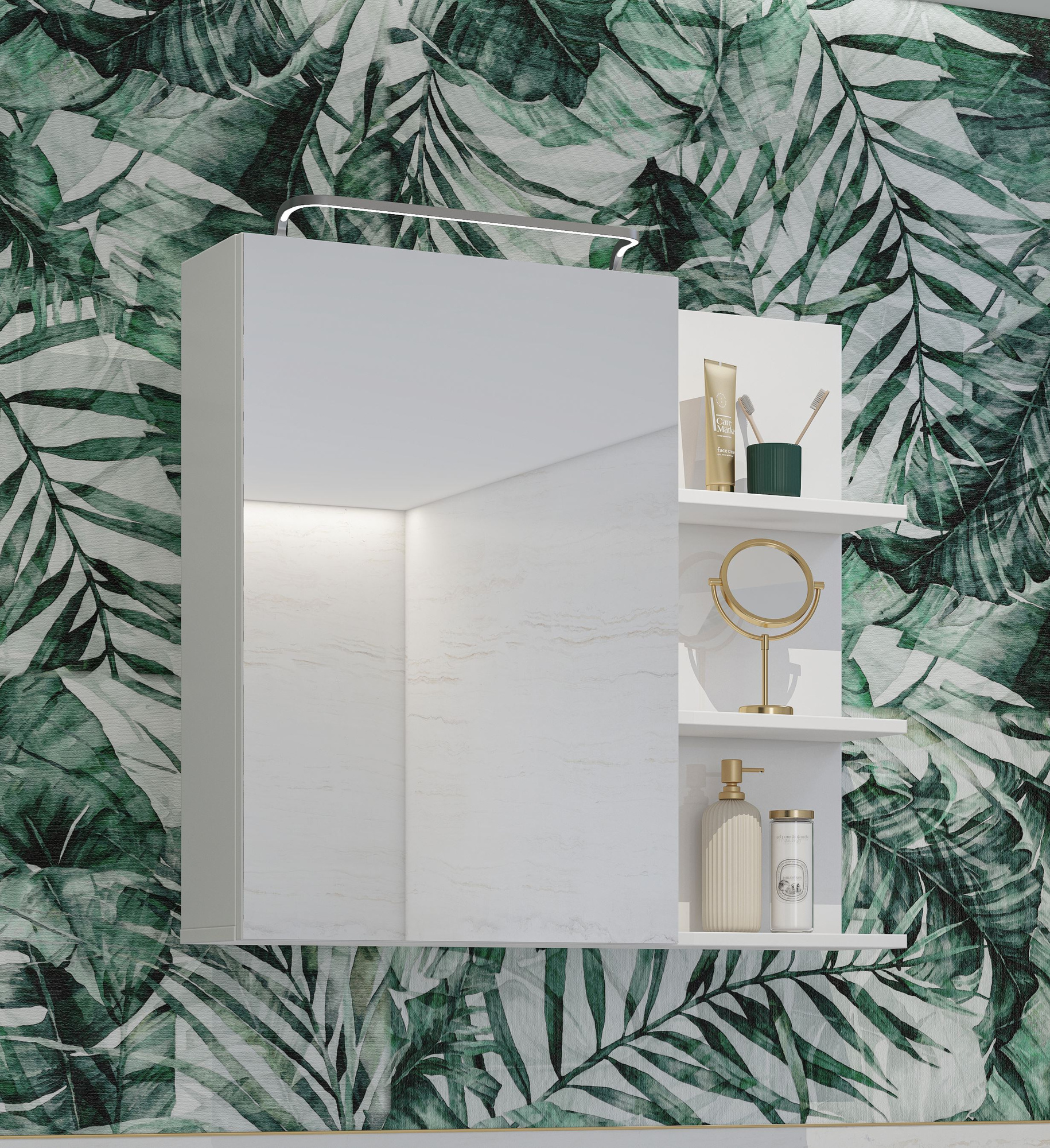 Irvine – 1 durų sieninė spintelė su veidrodžiu, balta, juoda, onikso spalvos, blizgi balta