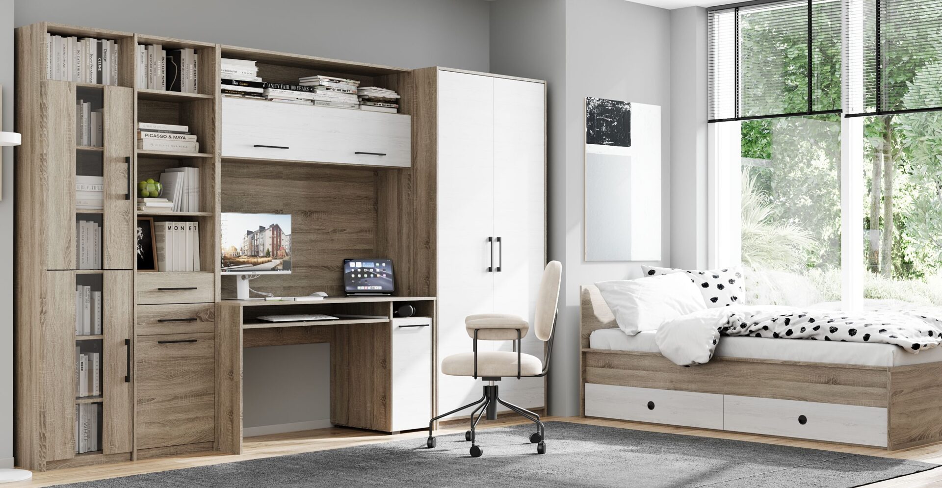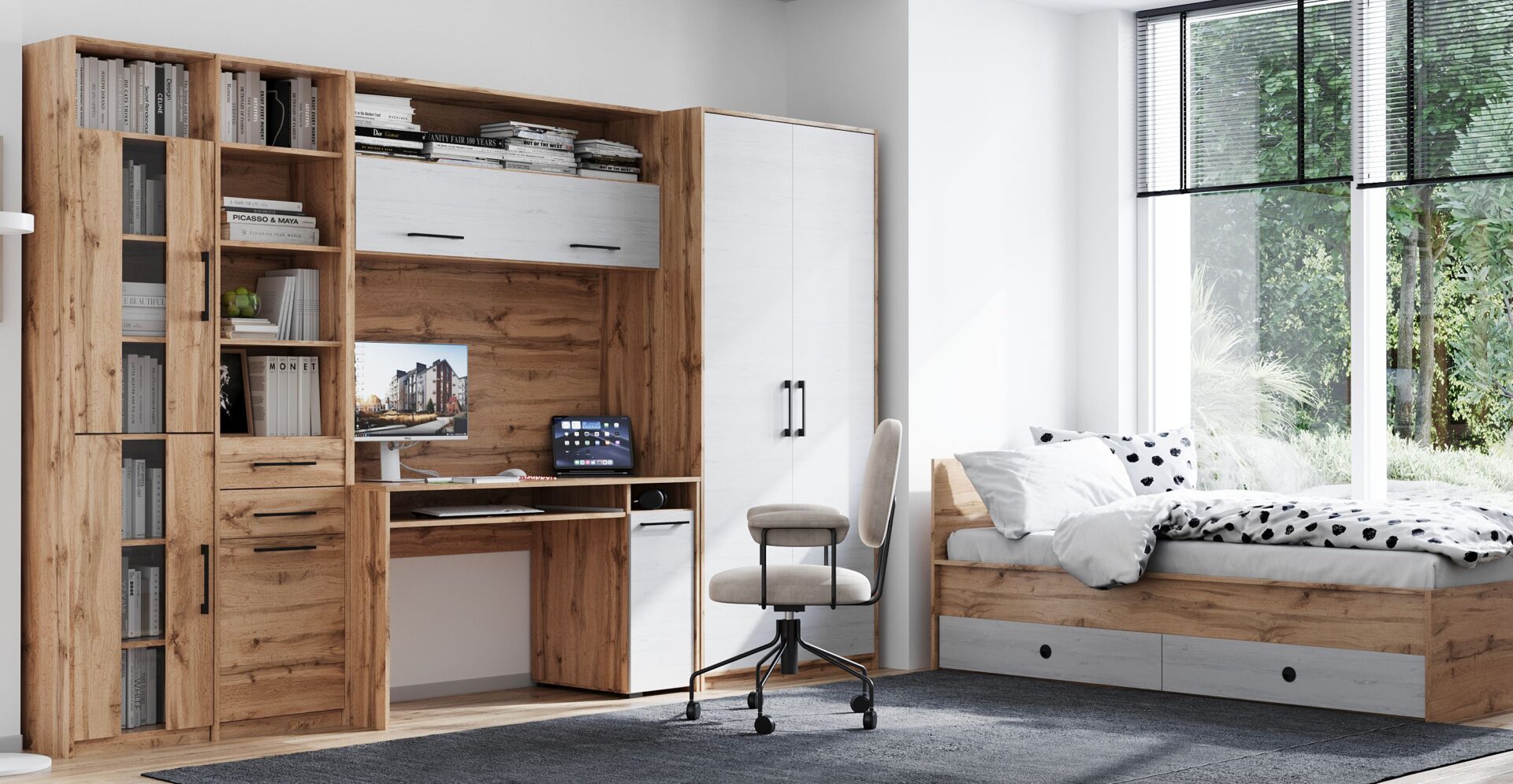 JIMI II jaunimo baldai puikiai papildys bet kurį paauglio ar vaiko kambarį. Unikalus dizainas suteiks stiliaus ir pabrėš jaunatvišką kambario charakterį. Tai puikus sprendimas visiems, kurie vertina funkcionalumą savo vaikų erdvėje. Kiekvienas komplekto elementas yra atskiras modulis, leidžiantis baldus išdėstyti bet kokiu deriniu. Baldai yra erdvūs ir siūlomi įvairių spalvų. Matmenys: