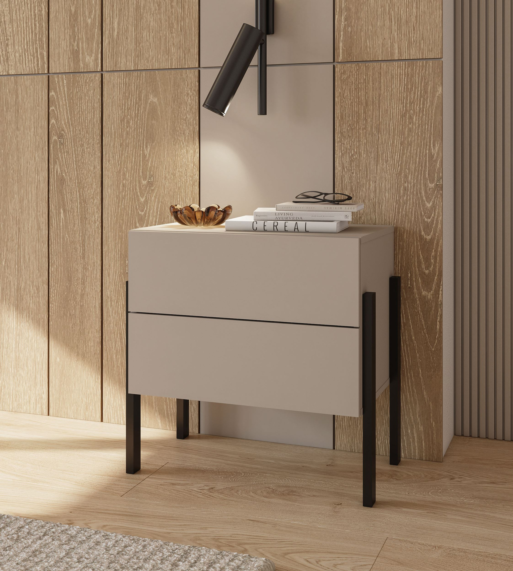 Būkite pirmas aprašęs “Jukon S – 2S naktinis staliukas su kašmyru, juodomis metalinėmis kojelėmis”
