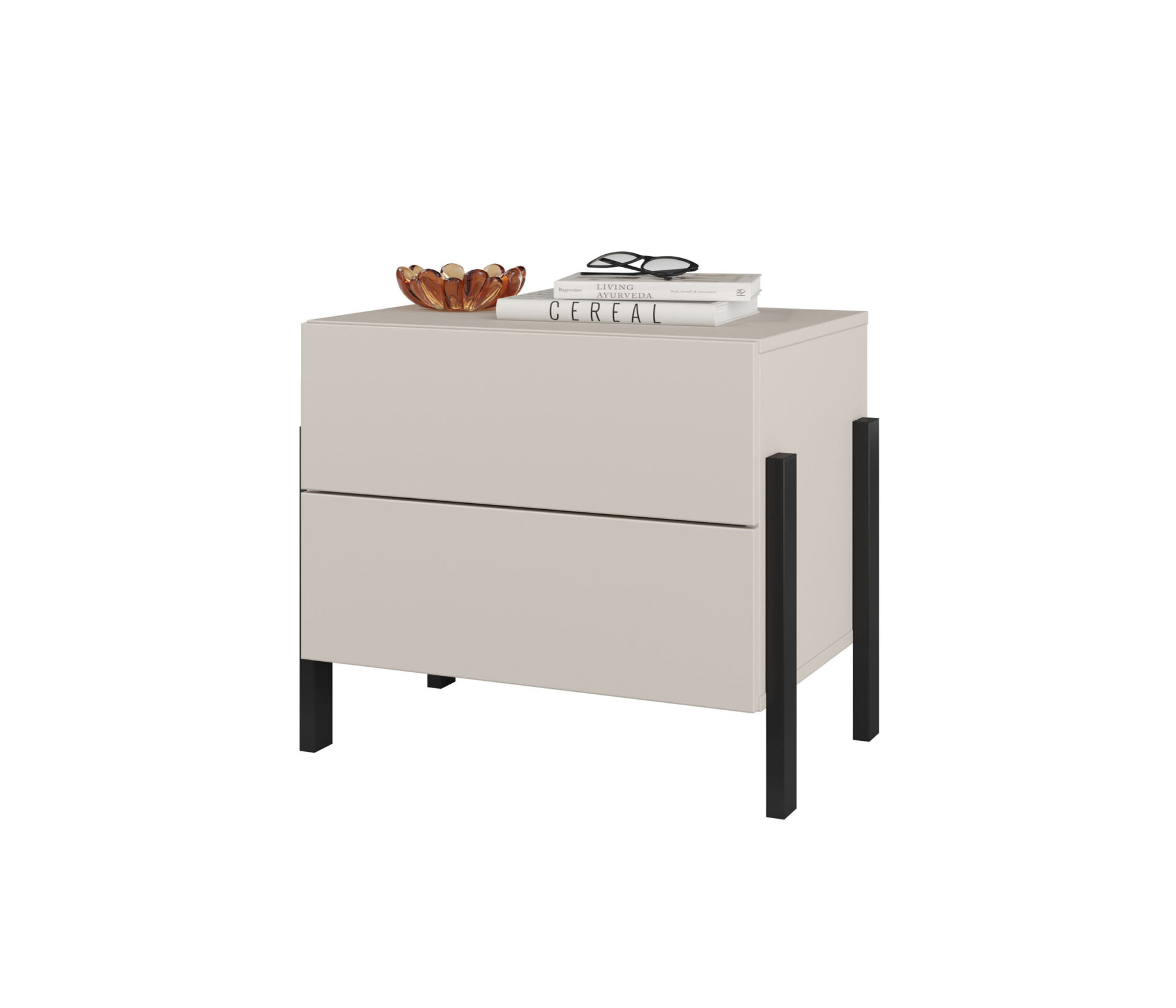 Jukon S – 2S naktinis staliukas su kašmyru, juodomis metalinėmis kojelėmis