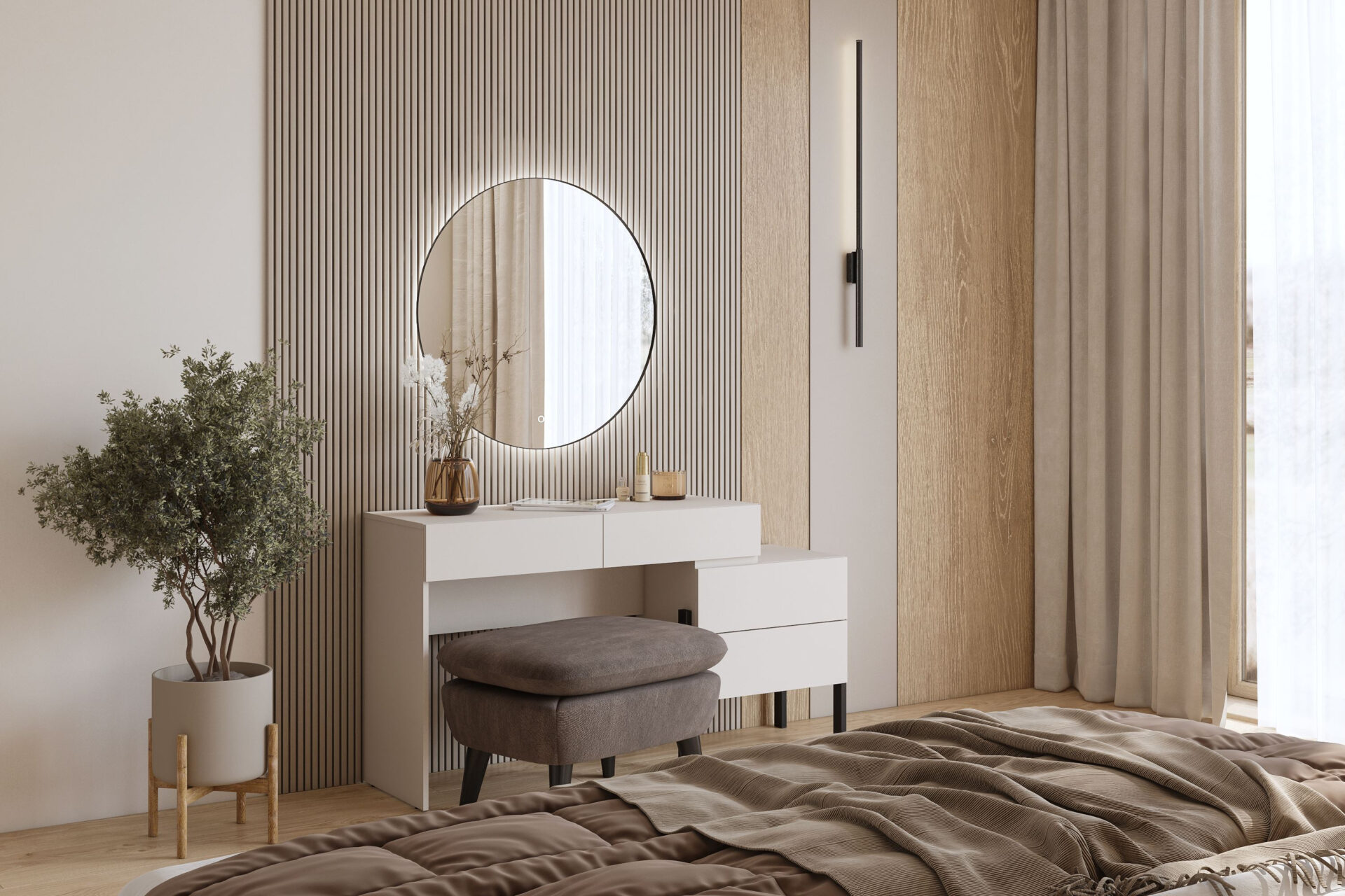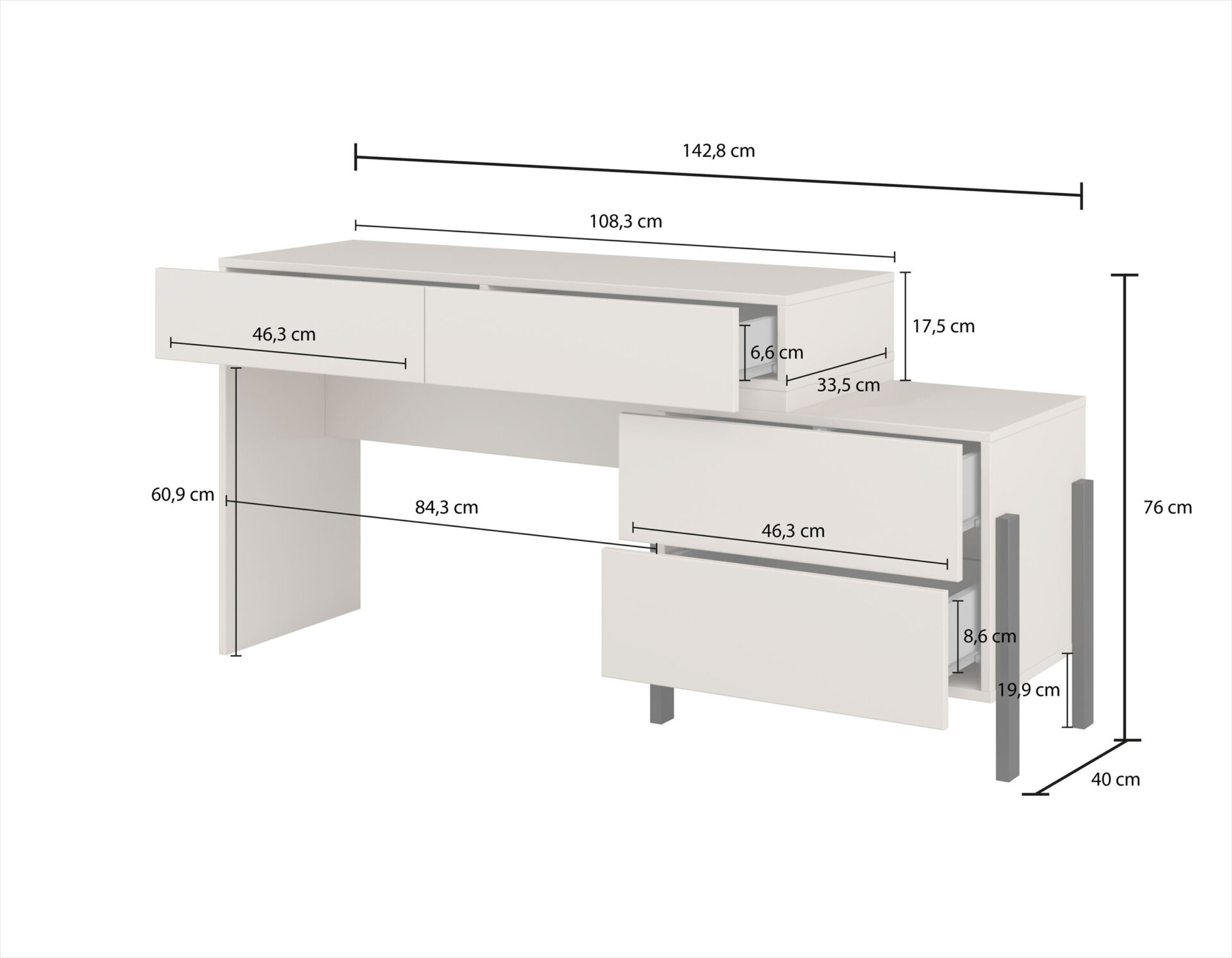 Atraskite eleganciją ir funkcionalumą su „Helvetia“ „Jukon S“ tualetiniu staliuku – puikiu šiuolaikinio interjero papildymu. Nesenstantis kašmyro dizainas ir stilingos juodos metalinės kojelės sukuria harmoningą kompoziciją, kuri tikrai patrauks akį bet kuriame miegamajame ar namų biure. Šis tualetinis staliukas ne tik suteiks žavesio jūsų interjerui, bet ir taps praktiška vieta kasdieniams ritualams. „Jukon S“ derina estetiką ir praktiškumą. 143 cm plotis ir 40 cm gylis daro jį idealiu sprendimu mažesnėms erdvėms, kur svarbus kiekvienas paviršius. Optimizuotas tualetinio staliuko vidus suteikia vietos kosmetikai, aksesuarams ir dokumentams, leisdamas palaikyti tvarką aplinkoje. Nesvarbu, ar jį naudosite kaip darbo stalą, ar kaip grožio zoną, tualetinis staliukas bus jūsų sąjungininkas kasdienėse užduotyse. Unikali kašmyro spalva ne tik suteikia šilumos, bet ir elegancijos interjerui, o matinė kojų apdaila pabrėžia modernų baldo charakterį. Naudotos medžiagos, tokios kaip laminuota plokštė, užtikrina patvarumą ir lengvą priežiūrą, o tai labai svarbu intensyviai naudojamose erdvėse. Savarankiško surinkimo galimybė suteikia jums lankstumo ir pasitenkinimo, kad patys surinksite unikalų baldą.