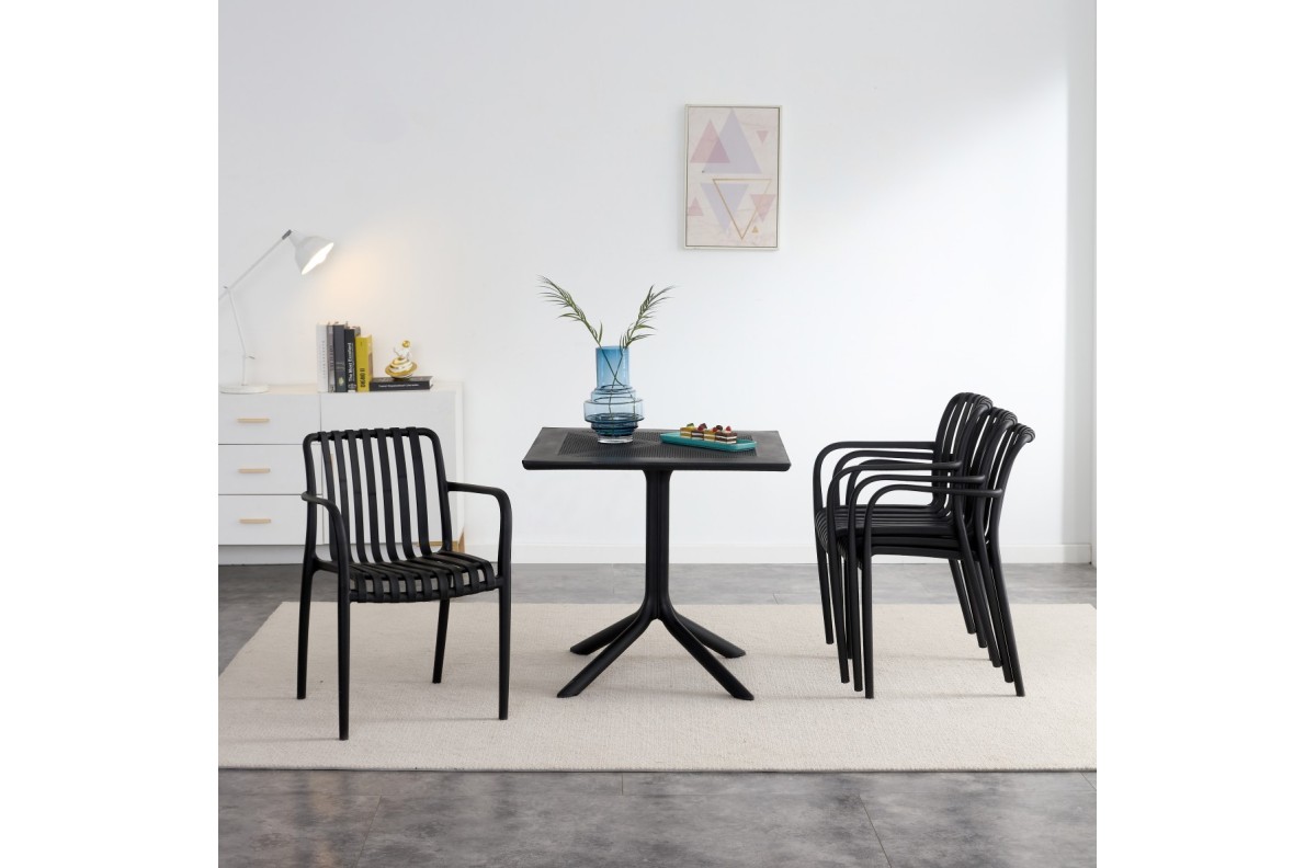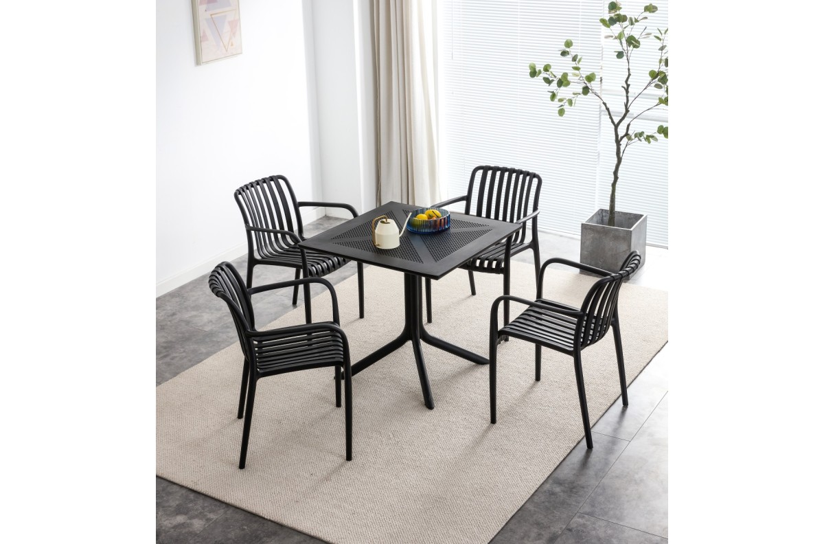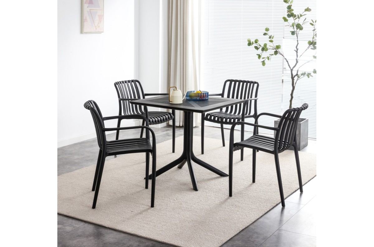 JULIAN Black – MODERNI PLASTIKINĖ SODO KĖDĖ (virtuvėje, kavinėje, sode) [SUDEDAMA VIENĄ KARTĄ]