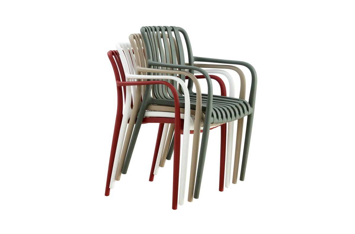Lengva, moderni ir neįtikėtinai patogi – būtent tokia yra JULIAN kėdė. Ji tinka bet kokiems namams ir gali būti lengvai integruojama į sodą, terasą ar kavinę. Dėl gilios sėdynės, išlenktos atlošo ir porankių ji yra neprilygstamo patogumo. Be to, ją galima sudėti vieną ant kitos, todėl nenaudojant ji neužima daug vietos.