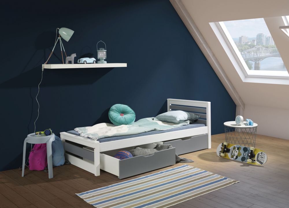 KAMA jaunimo lova sukurta iš pušies medienos, kuri yra griežtai testuojama dėl patvarumo ir saugumo savybių.