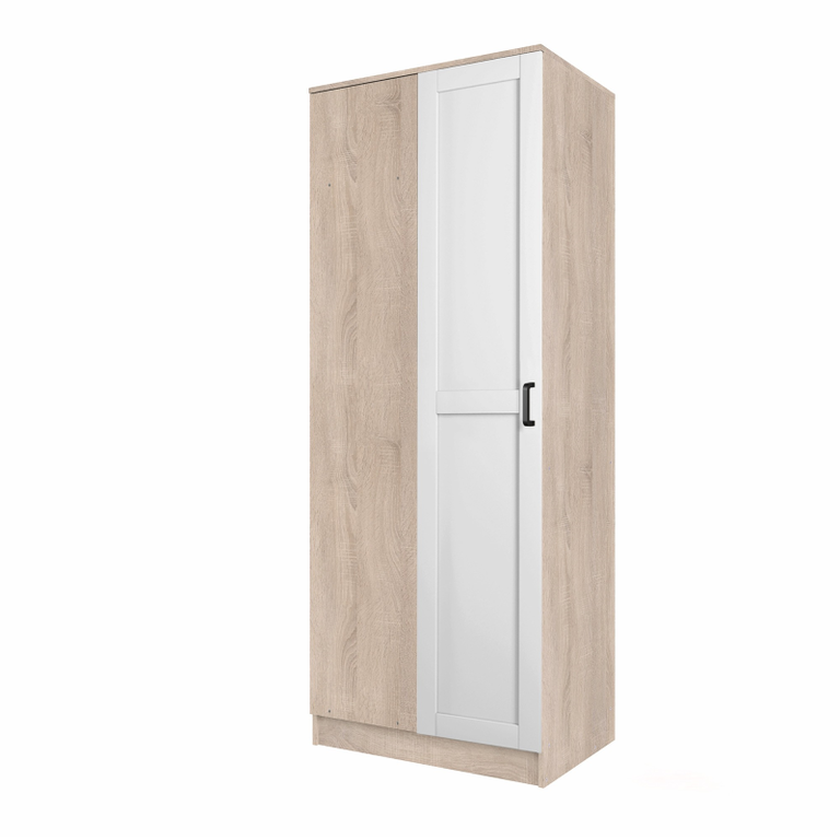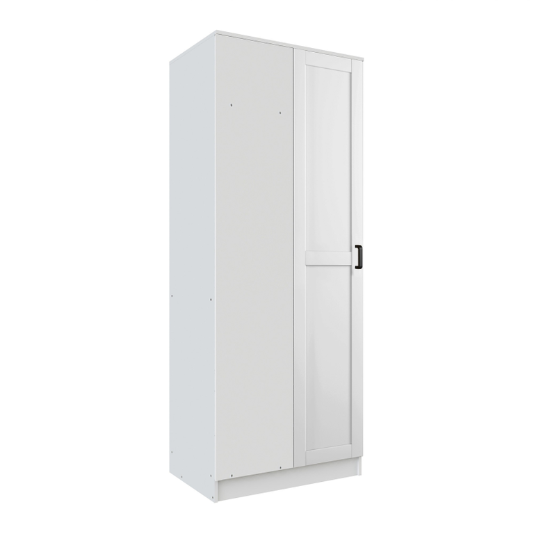 Stilinga ir praktiška kampinė spinta su rėminiu priekiu, idealiai tinka išnaudoti erdvę kampe. Galima rinktis kairinį arba dešininį variantus, todėl ją galima lanksčiai pritaikyti prie jūsų interjero išplanavimo. Viduje yra praktiška pakaba ir erdvi lentyna, leidžianti patogiai laikyti drabužius ir aksesuarus.