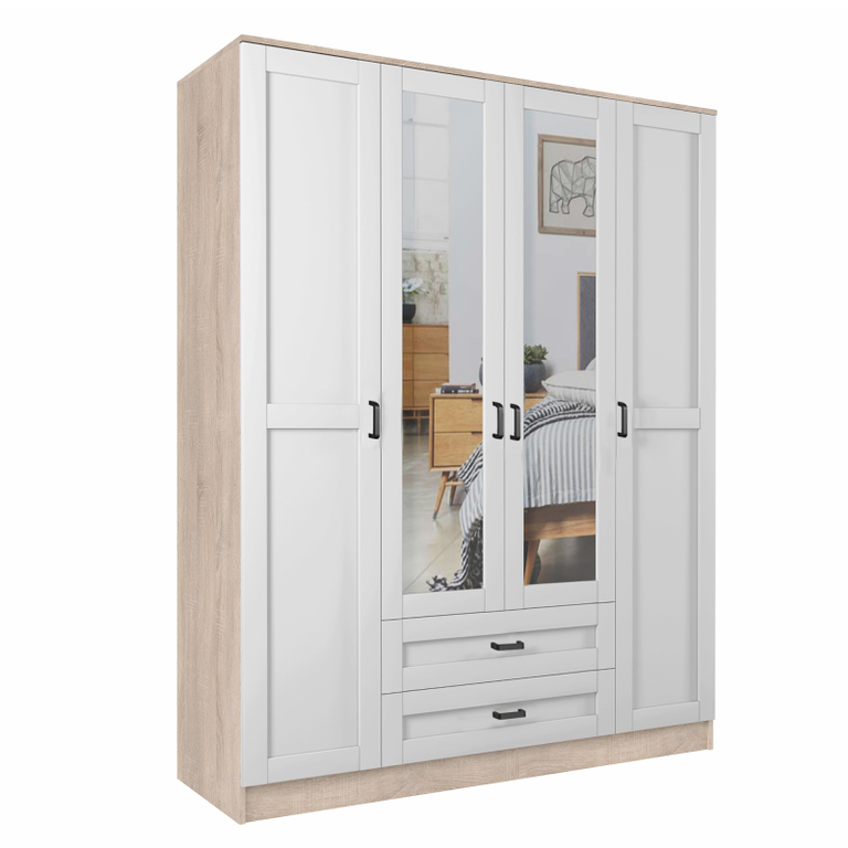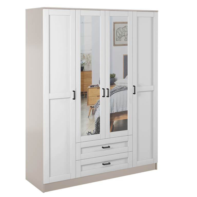 KAMI 4 durų spinta su veidrodžiu ir stalčiais, įvairių spalvų