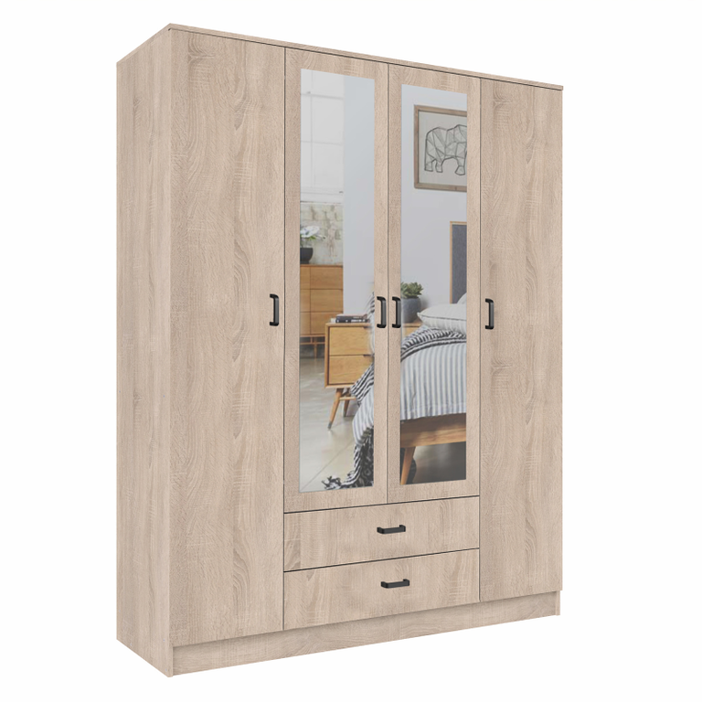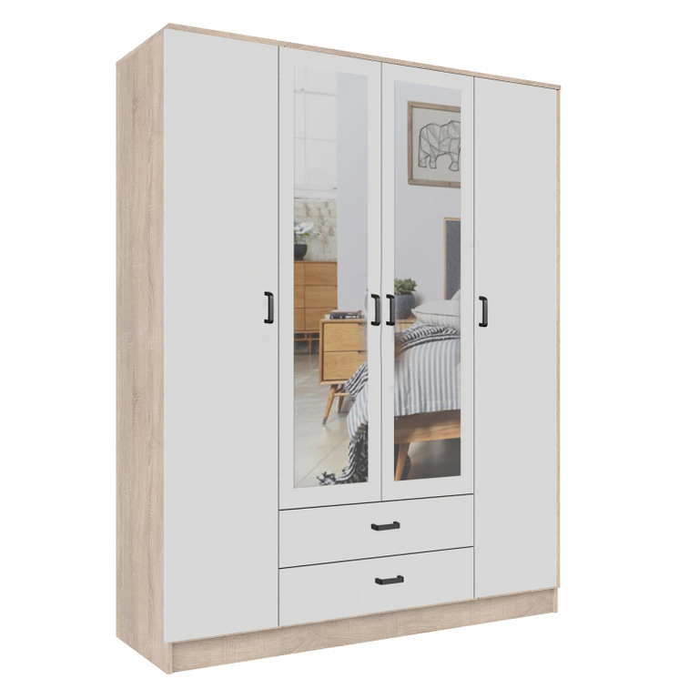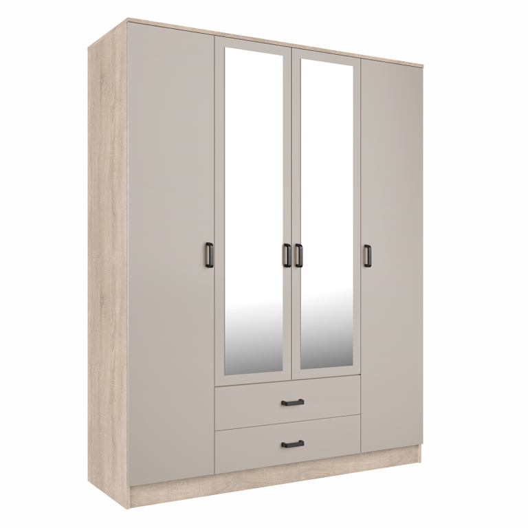 Aukštis cm: 205,6 Plotis cm: 160 Gylis cm: 53,8 Durų tipas: Atidaromos Durų skaičius: 4 Stalčių skaičius: 2 Veidrodžiai: Taip Savarankiškas surinkimas: Taip
