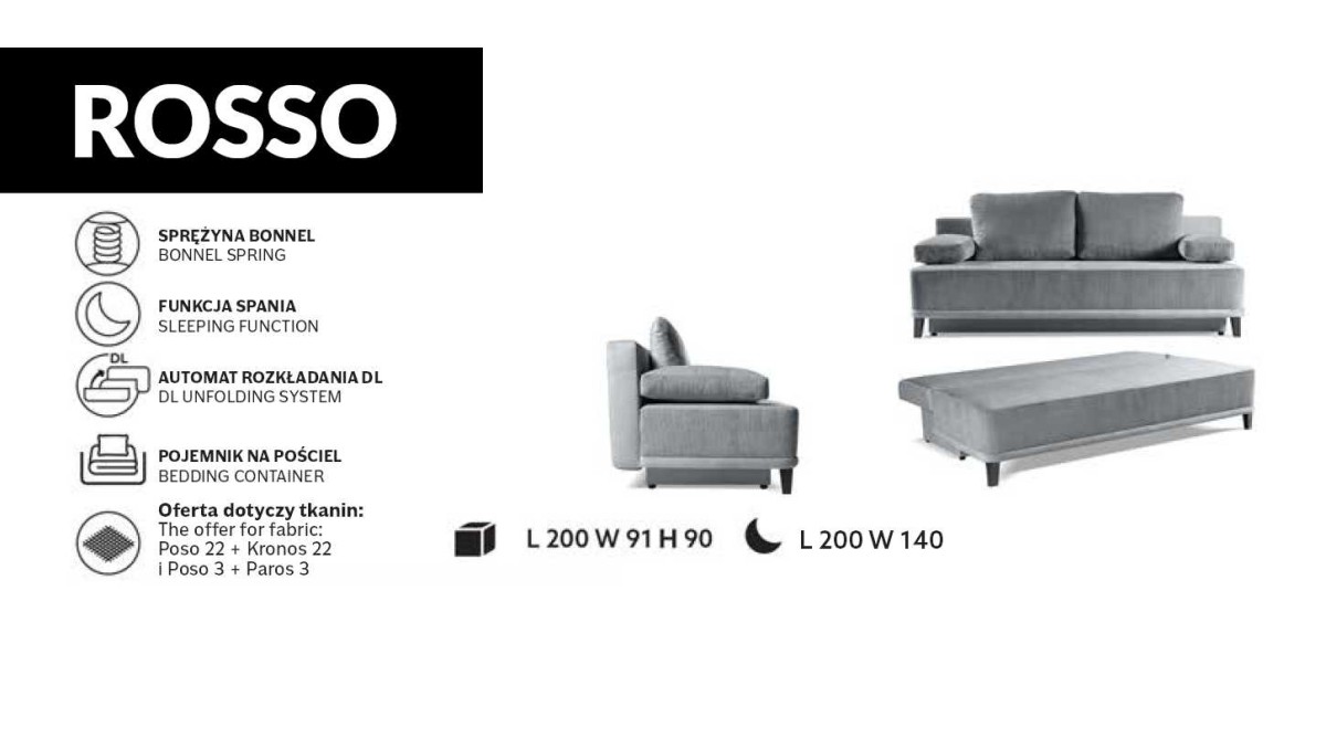 „Rosso“ sofa-lova – tai minkštas baldas, kurio modernų dizainą papildo praktiški dizaino sprendimai ir aukštos kokybės apmušalų medžiagos, todėl jis puikiai tinka bet kuriam svetainei.