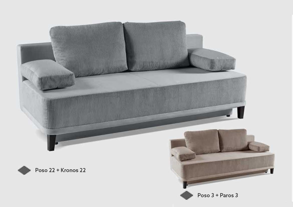 Sofa galima įsigyti tik su „Poso 22 + Kronos 22“ audiniu su įdėklais arba „Poso 03 + Paros 03“.