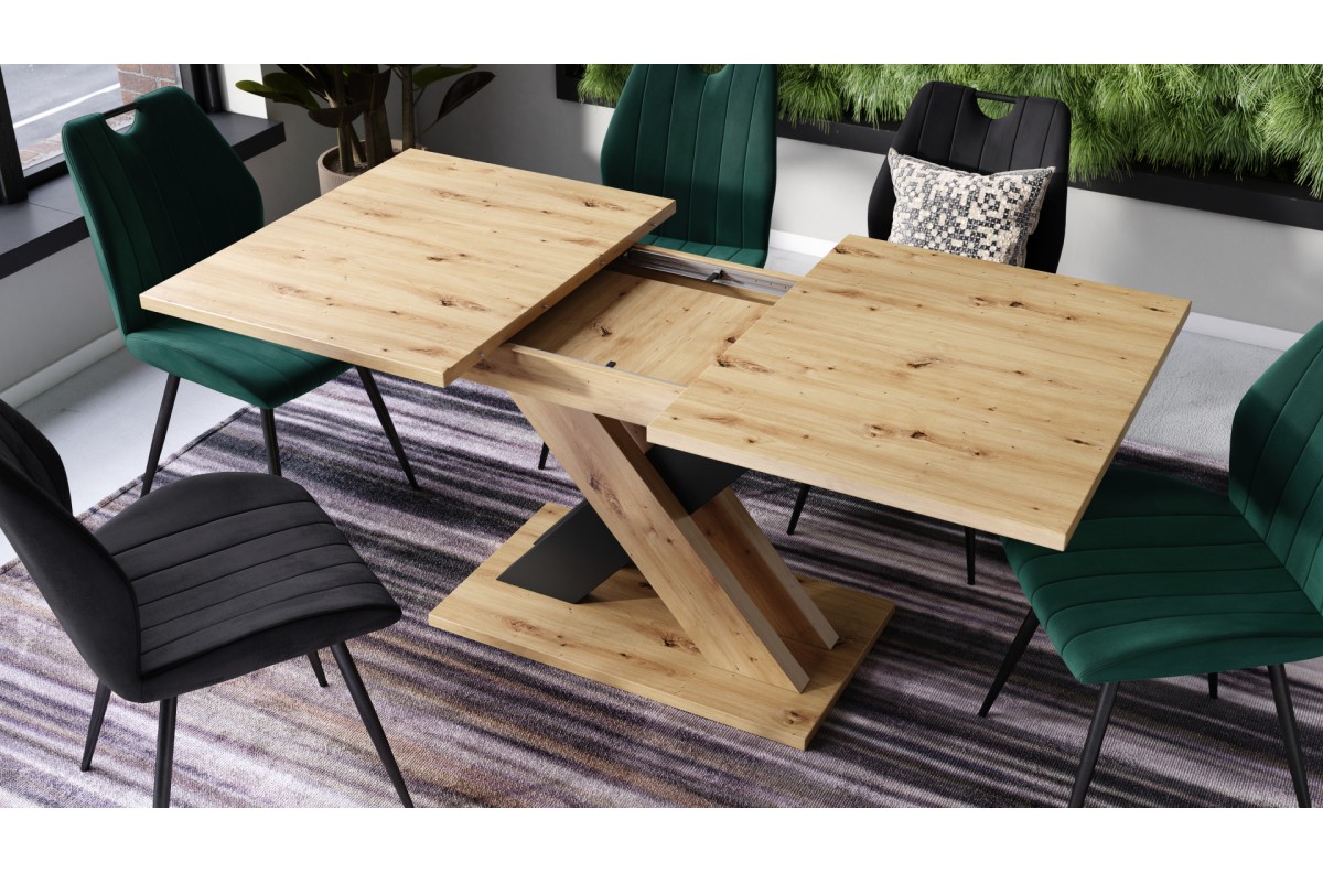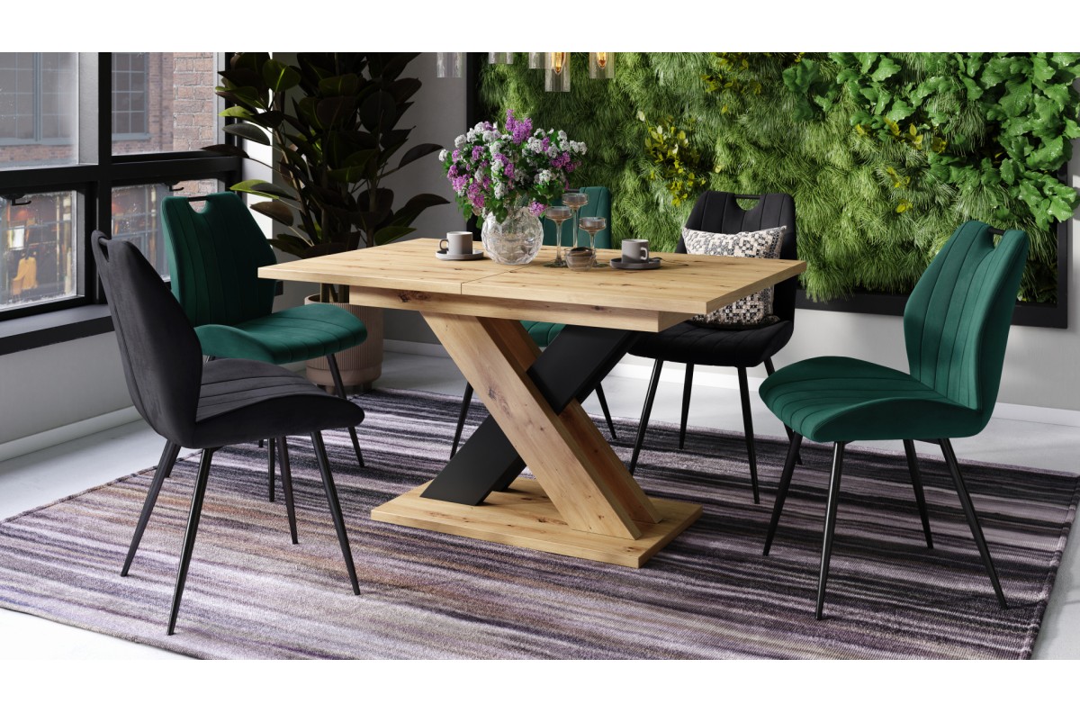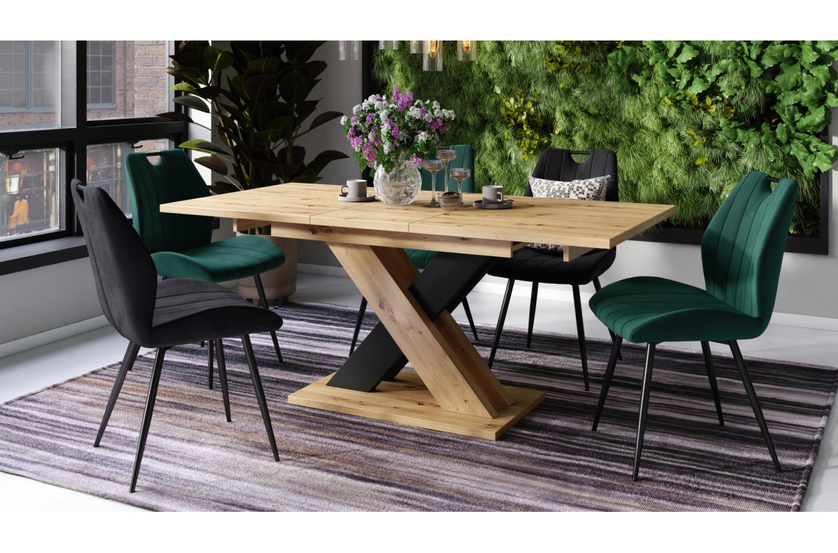 KARO Artisan ąžuolas/matinė juoda – MODERNUS STALAS, IKI 180 CM ILGIO!