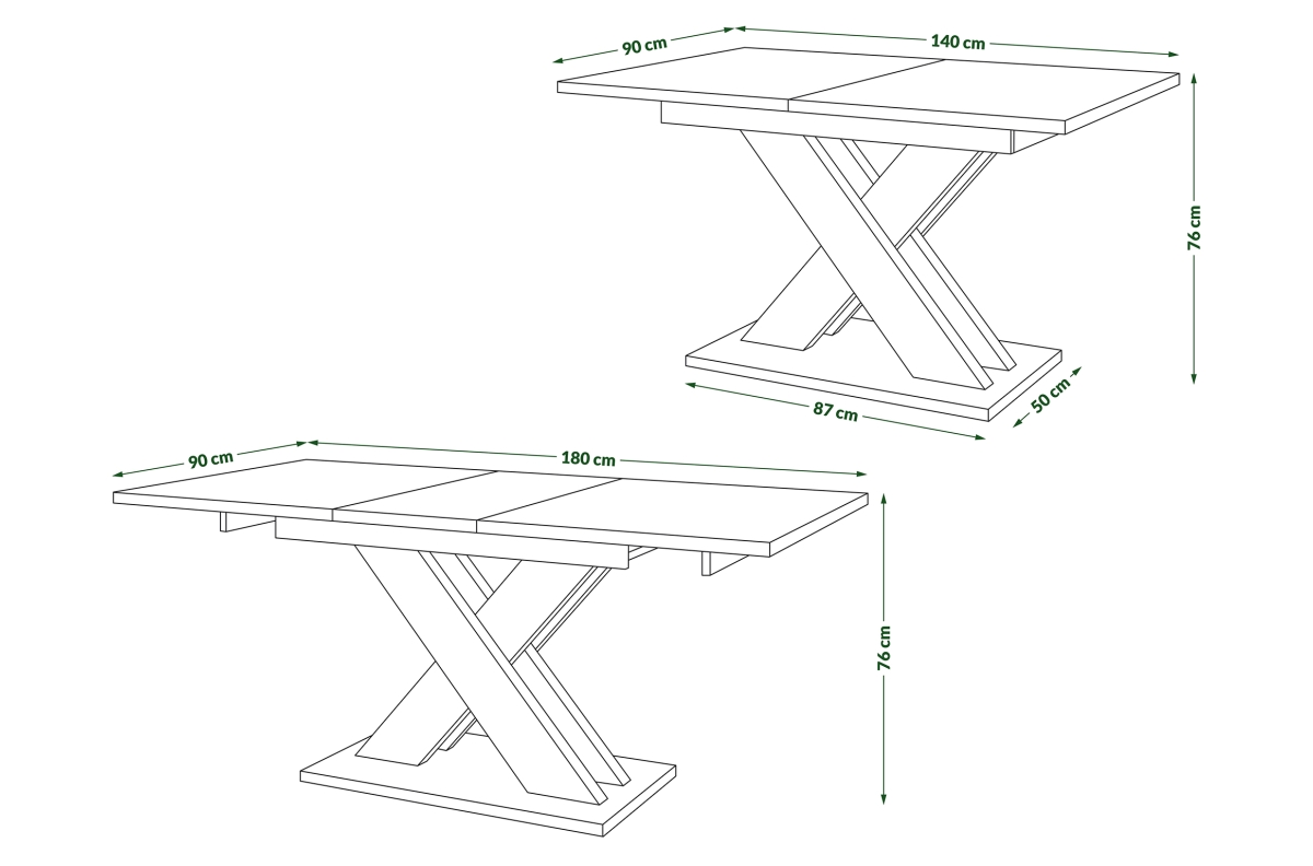 PLOTIS 140 cm / 180 cm, GYLIS 90 cm, AUKŠTIS 76 cm, ĮDĖKLŲ SKAIČIUS 1 vnt. x 40 cm (paslėpta po stalviršiu), FUNKCIJA Ištraukiamas stalviršis, PAVIRŠIUS Matinis, STILIUS Modernus, SVORIS SU PAKUOTE 66,6 kg