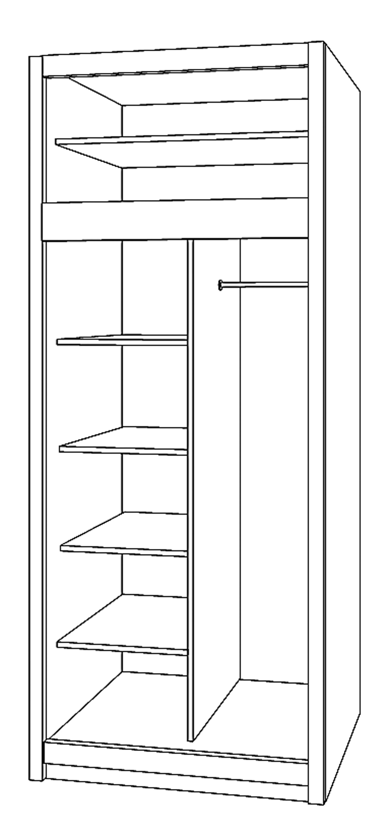 – Interior of the wardrobe: one shelf inside the door