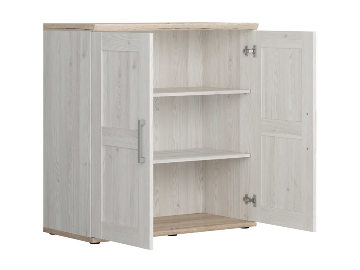 Komoda „Romance“ – paprasta elegancija kompaktiškame dizaine. Jūsų svetainė – tai erdvė, kurioje elegancija dera su jaukumu, ir kiekvienas elementas svarbus. Skandinaviško dizaino įkvėpta kolekcija „Romance“ į jūsų svetainę įneš ne tik stiliaus, bet ir funkcionalumo. Spintelė „Romance“ siūlo kompaktišką daiktų laikymą, kuris puikiai papildys jūsų erdvės dizainą. Paprasta spintelės forma slepia praktiškumą, leisdama laikyti įvairius aksesuarus. Už dviejų fasadų galite paslėpti daiktus, kuriuos norite visada turėti po ranka, tuo pačiu palaikydami tvarką svetainėje. Kolekcija „Romance“ išsiskiria žaviu šviesių Sibiu maumedžio fasadų ir San Remo ąžuolu dažytų viršutinių bei apatinių kraštų deriniu. Šis derinys suteikia baldams lengvumo pojūtį, kartu suteikdamas charakterio ir elegancijos. Fasadų rėmeliai – tai detalės, pabrėžiančios kolekcijos tvirtumą, atkartojančios Šiaurės Europos baldų tradicijas. Šie subtilumai paverčia spintelę ne tik praktišku baldu, bet ir estetišku interjero papildymu. Firminiai aksesuarai ir paprastos sidabrinės rankenėlės suteikia lengvą prieigą prie dvidurės spintelės turinio. Ergonomiški sprendimai leidžia ja naudotis patogiai ir intuityviai. „Romance“ spintelė yra vienas iš daugelio kolekcijos elementų, į kurią taip pat įeina komodos, knygų lentynos, televizoriaus staliukai, lentynos ir veidrodžiai. Sujunkite šiuos elementus, kad sukurtumėte darnią ir ergonomišką svetainę, kurioje funkcionalumas dera su elegancija. Tegul „Romance“ spintelė tampa neatsiejama jūsų svetainės dalimi, suteikiančia harmonijos, stiliaus ir tvarkos.
