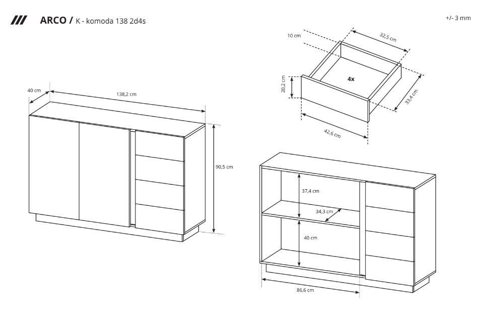 Arco 2D4S 138 komoda – turi dvi spinteles ir keturis stalčius.