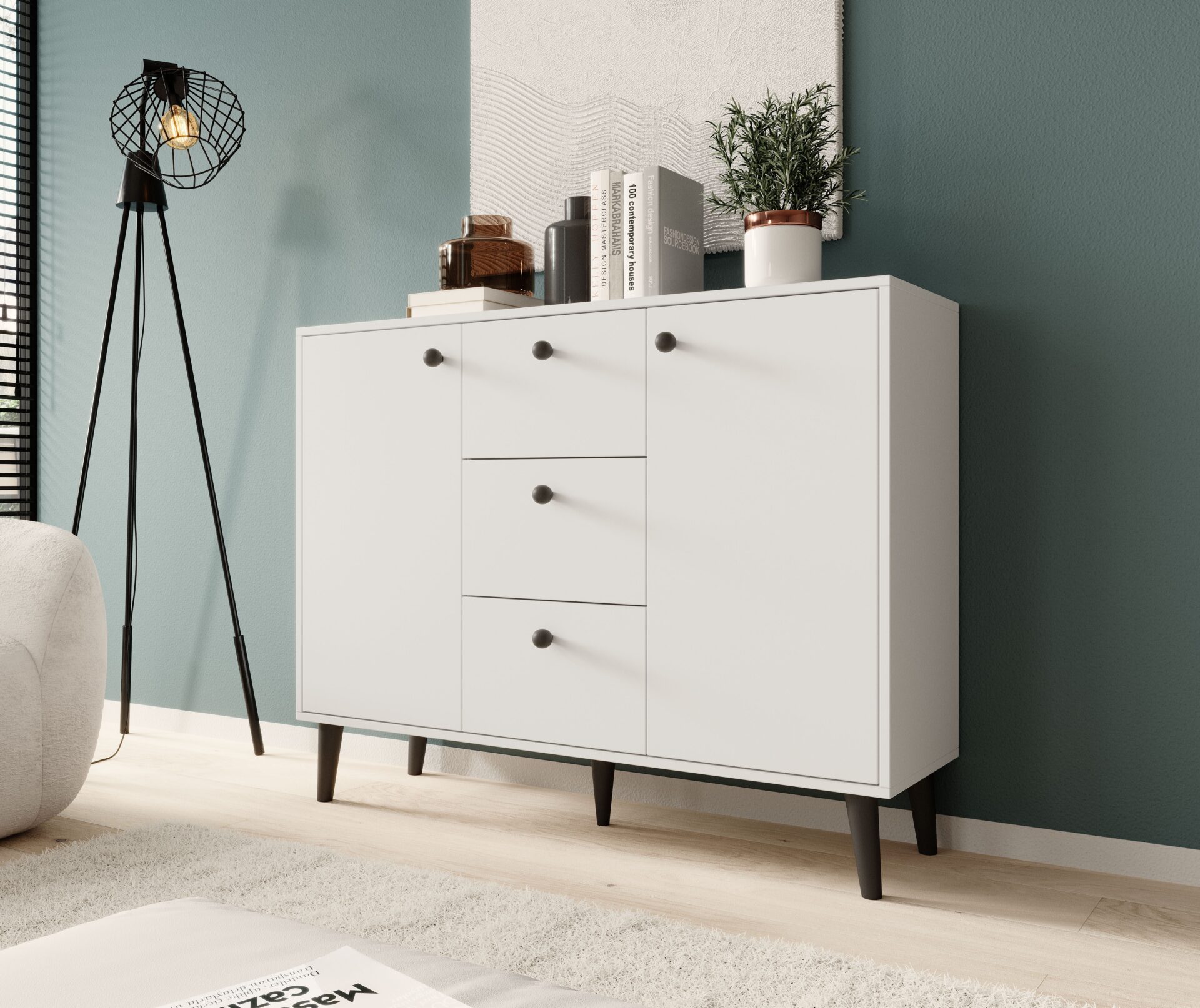 BESA komoda – tai tobulas minimalistinio dizaino ir lengvos formos derinys. Aukštos medinės kojelės suteikia jai žavesio, užtikrindamos stabilią ir tvirtą konstrukciją. Trys erdvūs stalčiai leidžia laikyti smulkius daiktus ar dokumentus, o dvi šoninės spintelės su lentyna viduje suteikia papildomos vietos daiktams susidėti. BESA komoda puikiai tiks jūsų svetainei, miegamajam ar prieškambariui.